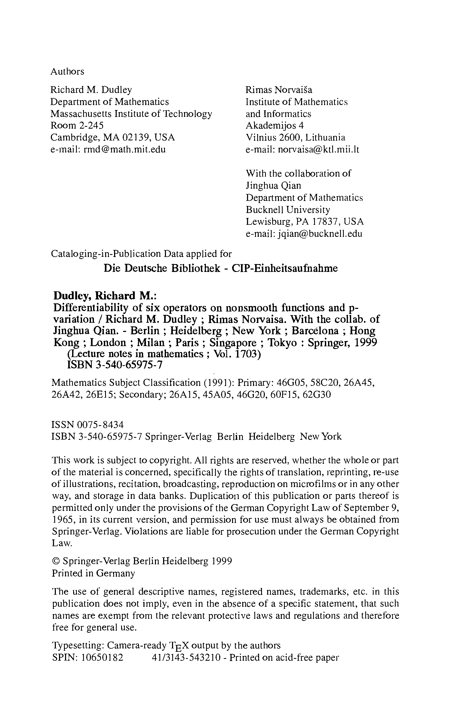 "Differentiability of Six Operators on Nonsmooth Functions and p-variation" - читать интересную книгу автора (R. M. Dudley, R. Norvaia, J. Qian) |