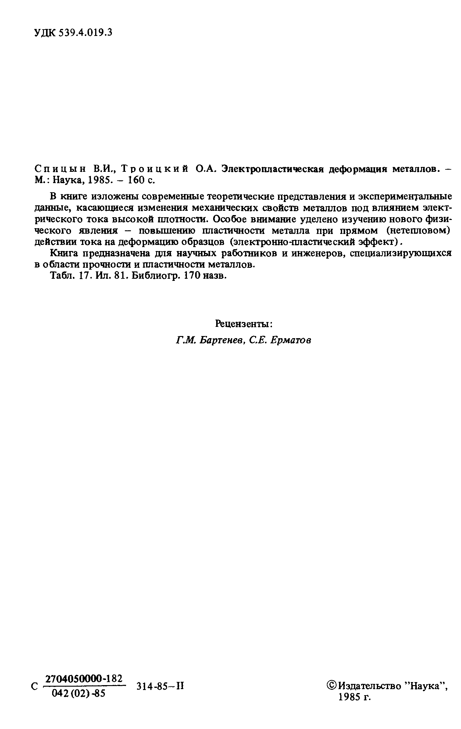 "Электропластическая деформация металлов" - читать интересную книгу автора (Спицын В.И., Троицкий О.А.) |