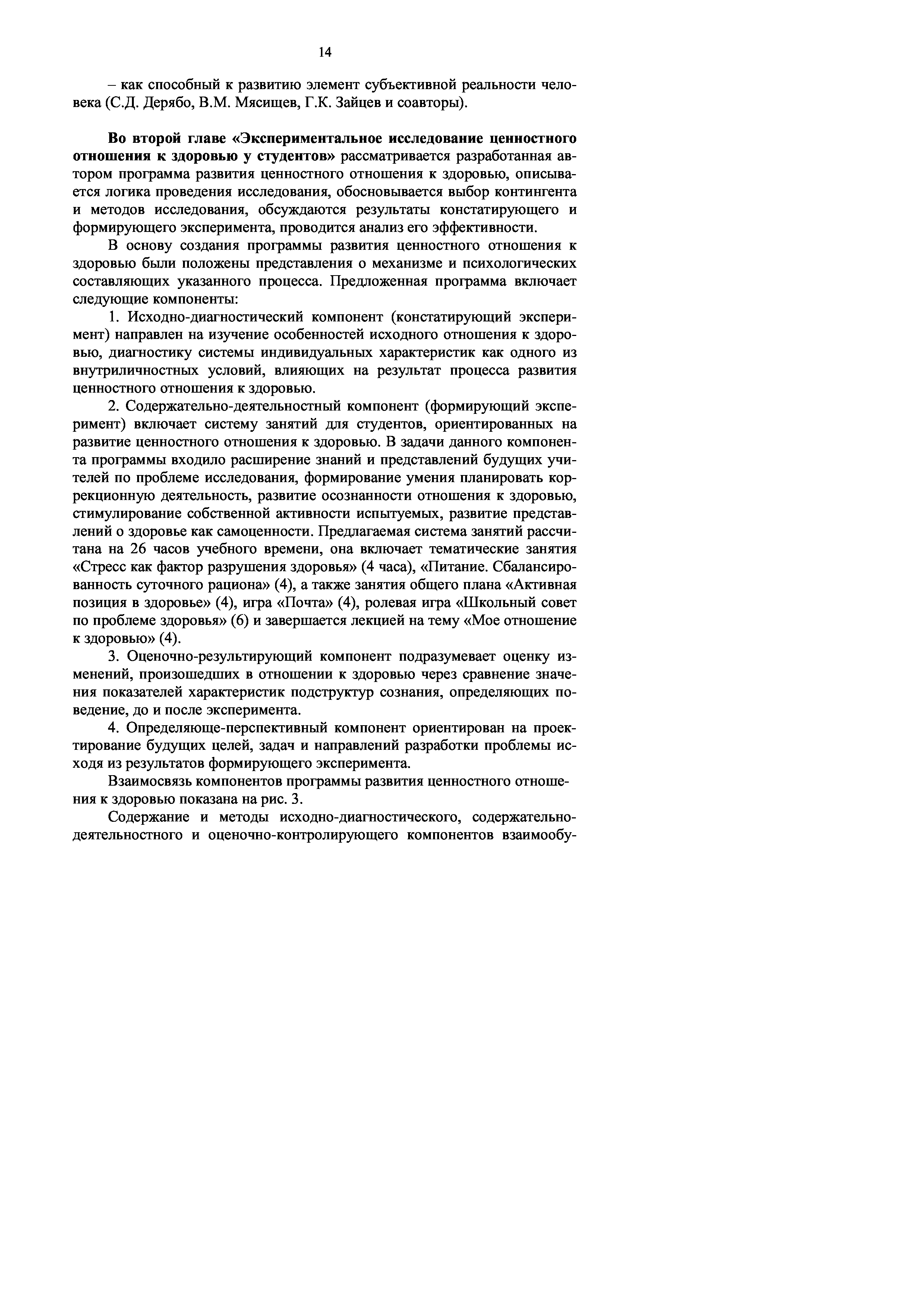 "Психологич. составляющие цен. отношения к здоровью у студентов педагогич. ВУЗа(Автореферат)" - читать интересную книгу автора (Белинская Т.В.) |