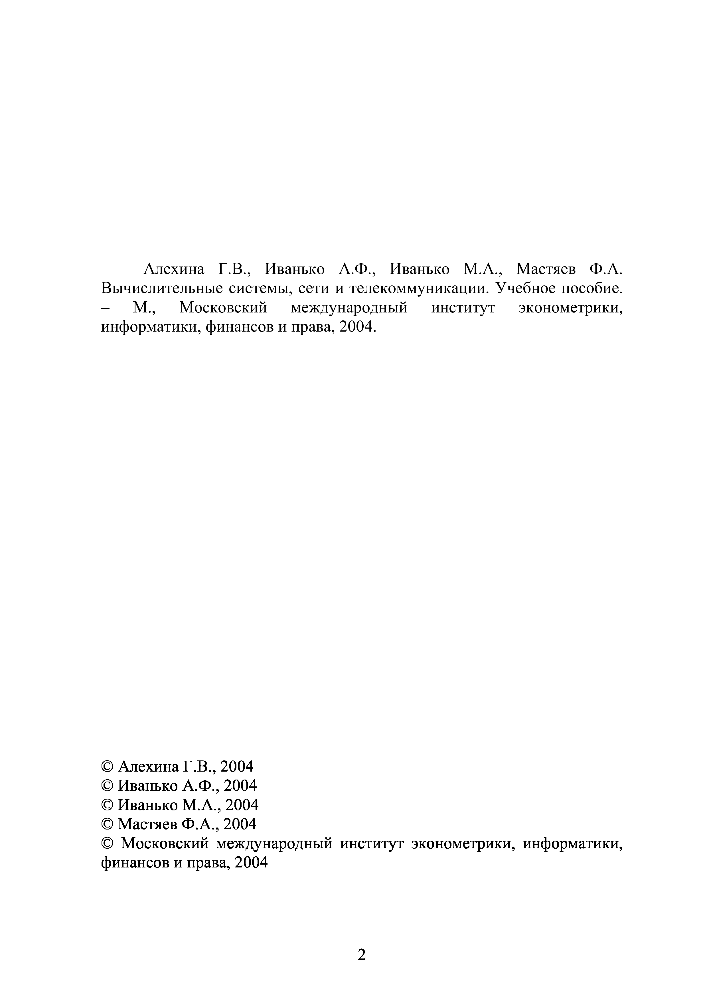 "Вычислительные системы, сети и телекоммуникации. Учеб. пособие" - читать интересную книгу автора (Алехина Г.В., Иванько А.Ф., Иванько М.А.) |
