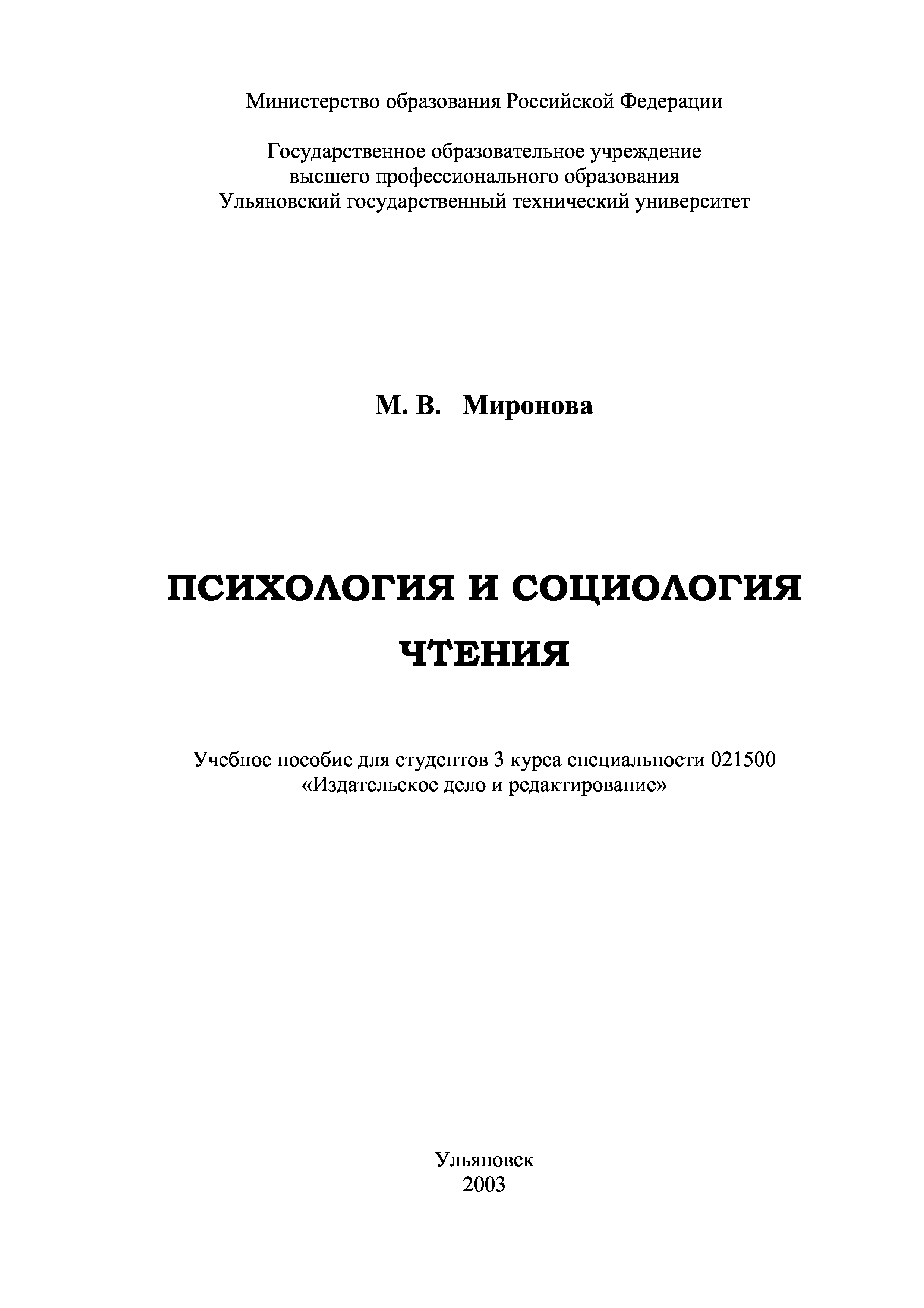 "Психология и социология чтения. Учебн. пособ для студентов 3 курса специальности 021500 Издательское дело и редактирование" - читать интересную книгу автора (Миронова М.В.) |