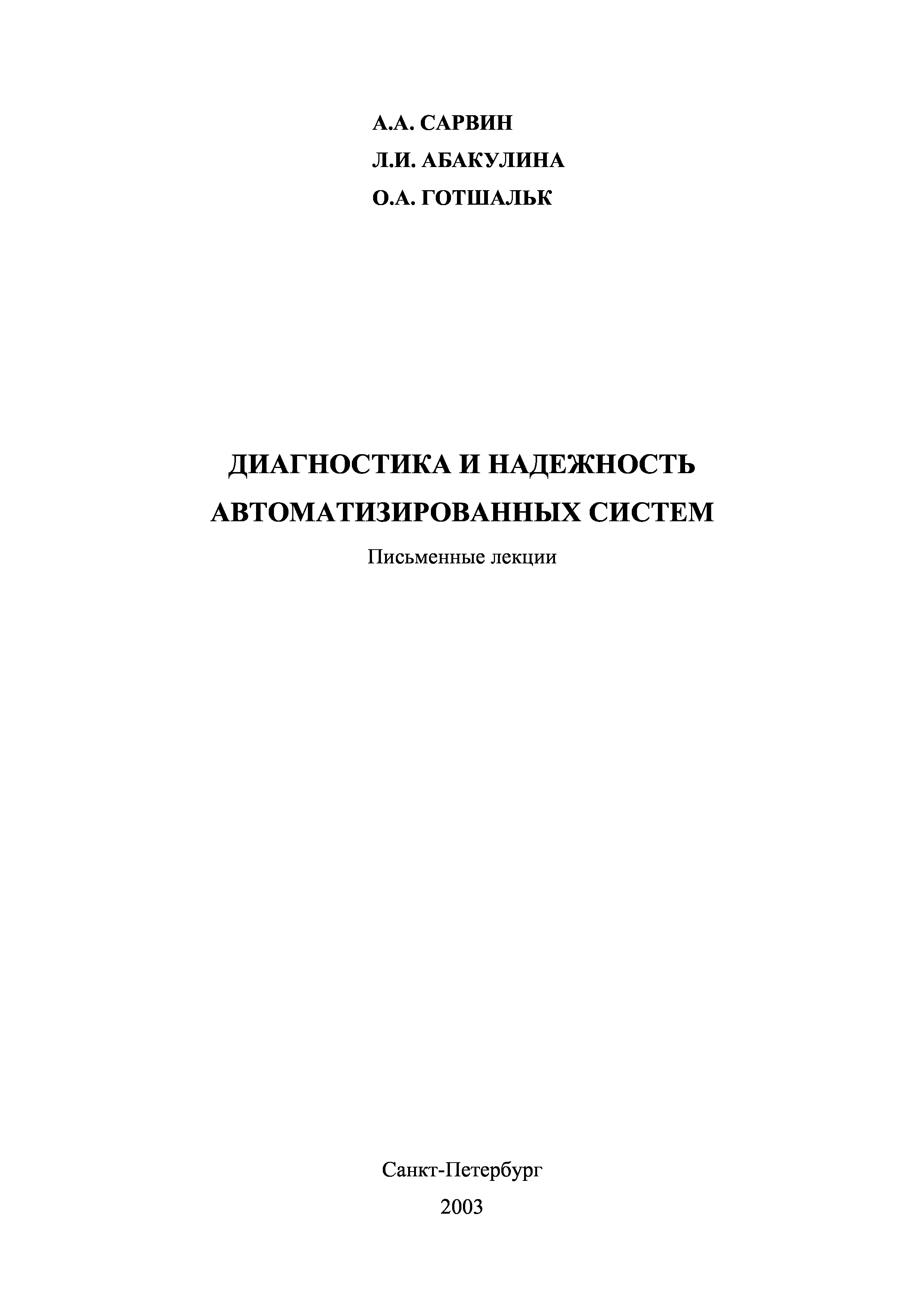 "Диагностика и надёжность автоматизированных систем. Письменные лекции" - читать интересную книгу автора (Сарвин А.А., Абакулина Л.И., Готшальк О.А.) |