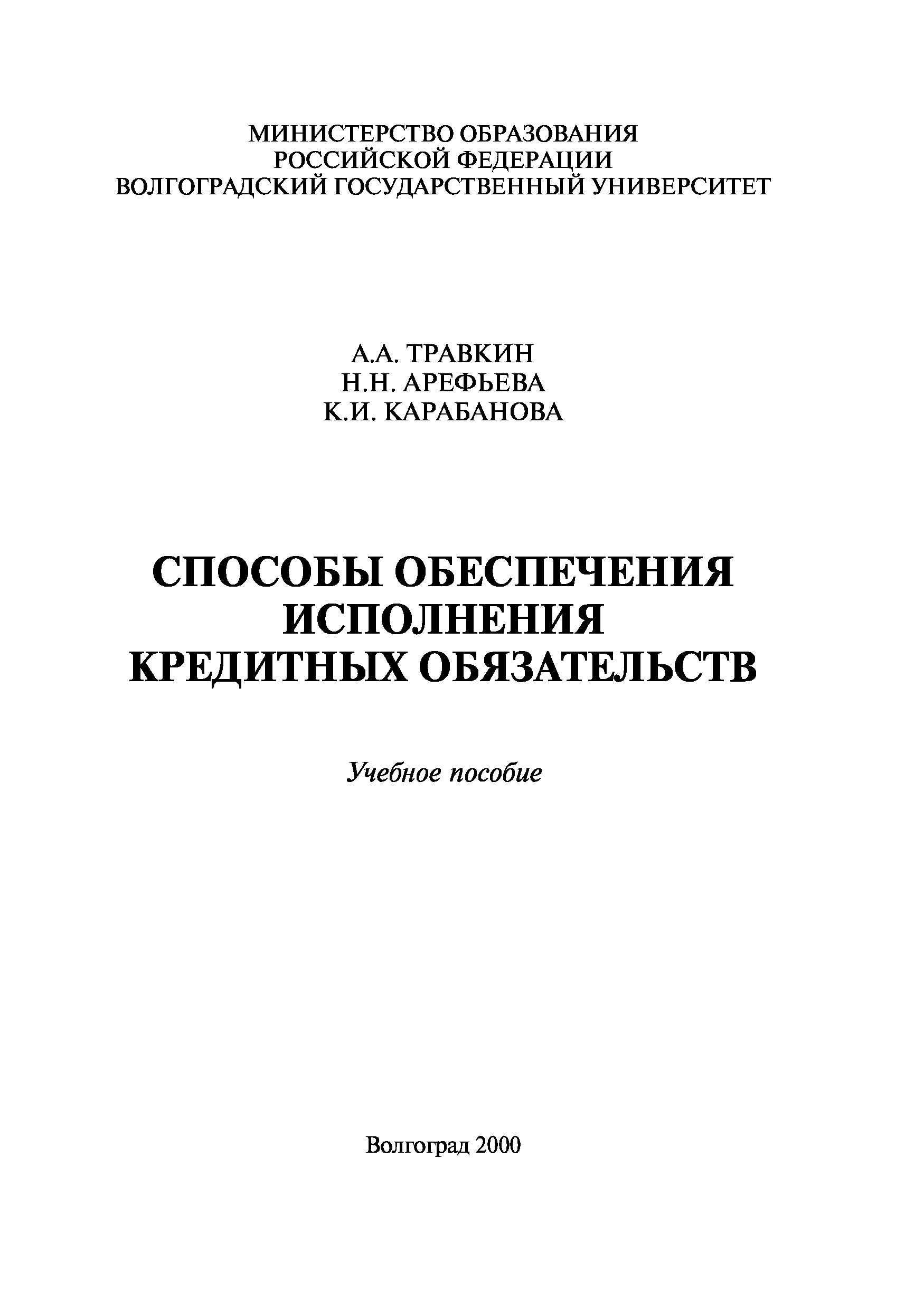 "Способы обеспечения исполнения кредитных обязательств. Учебн. пособ" - читать интересную книгу автора (Травкин А.А., Арефьева Н.Н., Карабанова К.И.)
