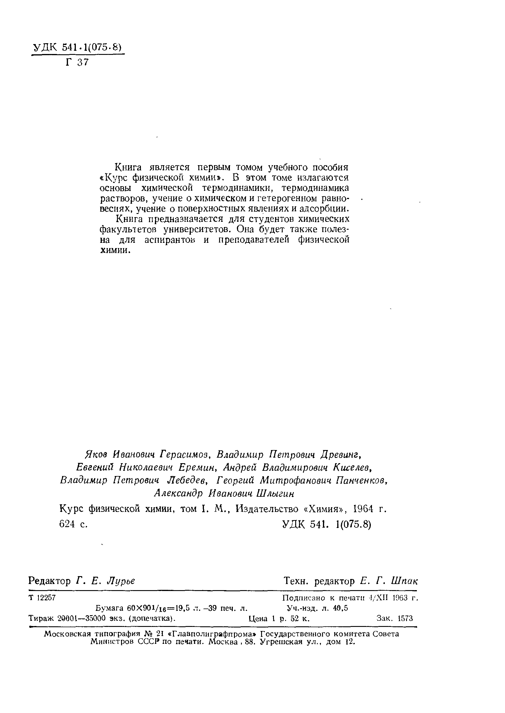 "Курс физической химии" - читать интересную книгу автора (Герасимов Я.И., и др.)