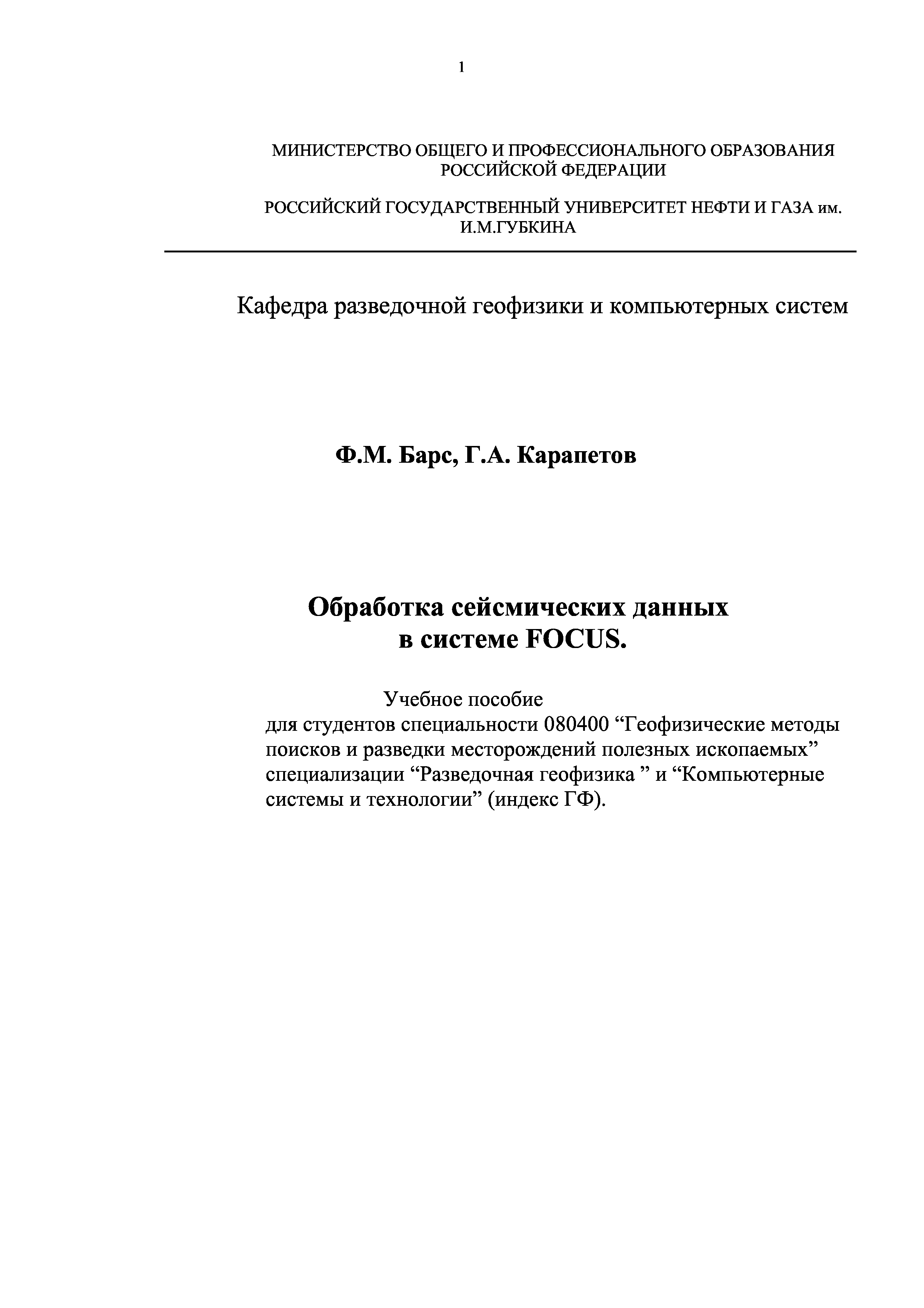 "Обработка сейсмических данных в системе ФОКУС" - читать интересную книгу автора (Барс Ф.М., Карапетов Г.А.) |