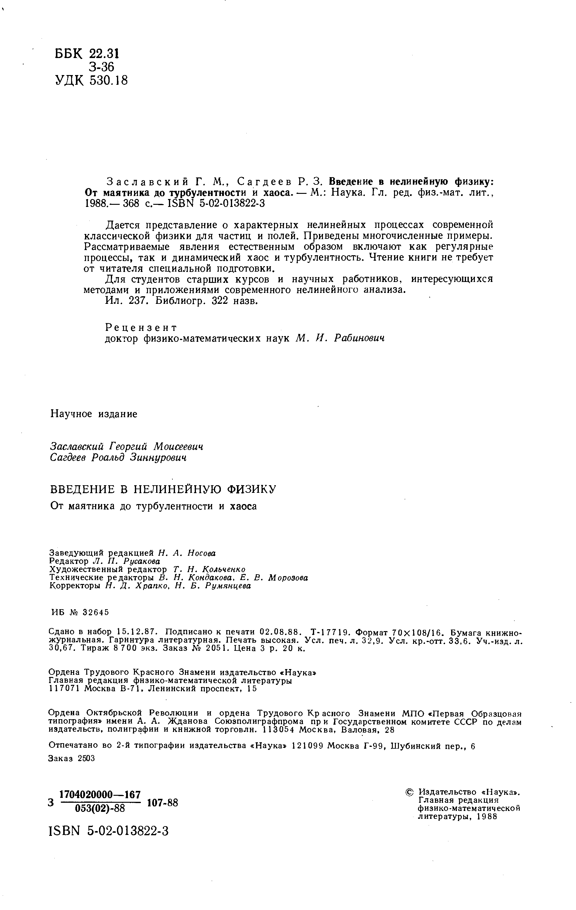 "Введение в нелинейную физику. От маятника до турбулентности и хаоса" - читать интересную книгу автора (Заславский Г.М., Сагдеев Р.З.) |