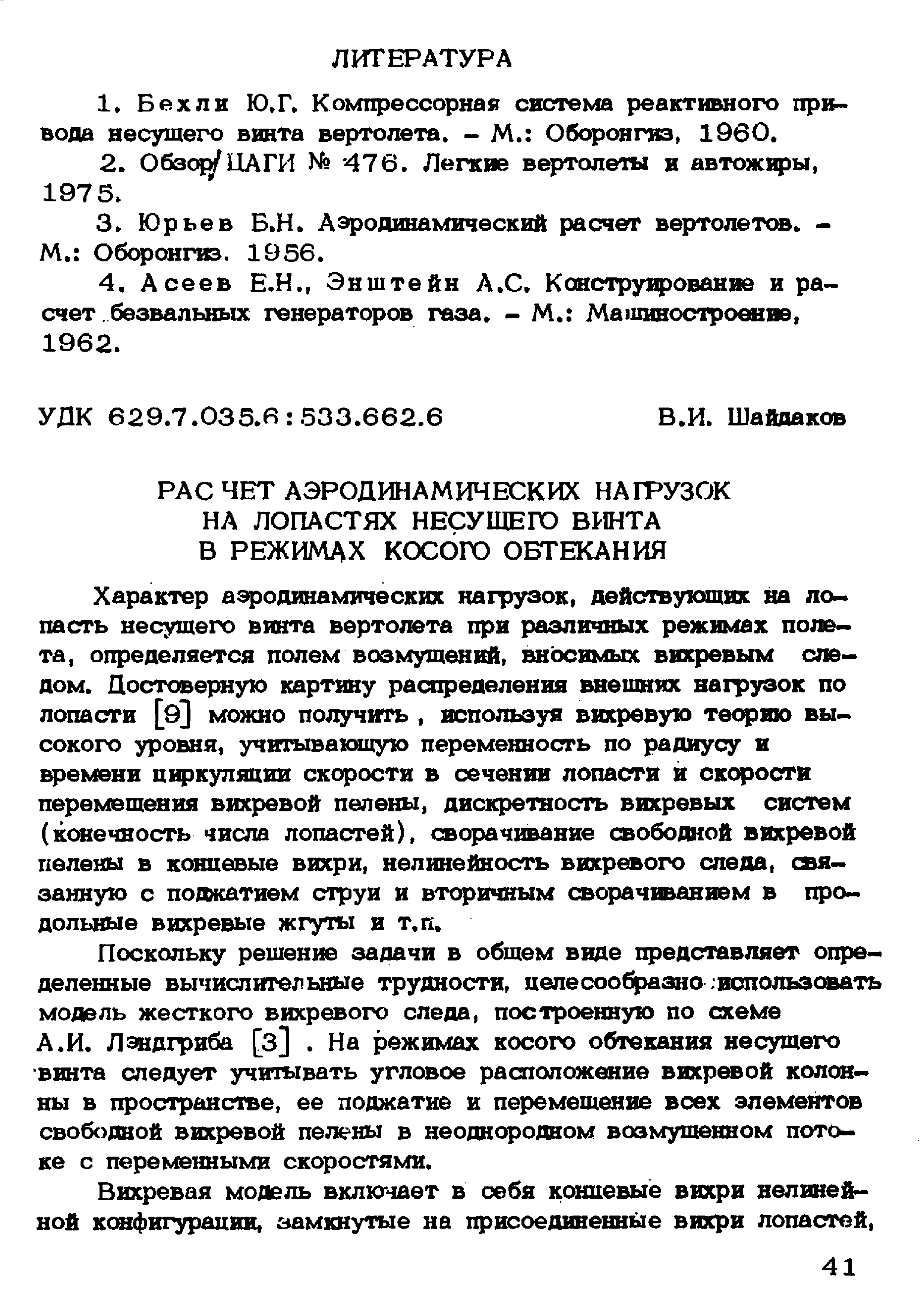 "Расчет аэродинамических нагрузок на лопастях несущего винта в режимах косого обтекания" - читать интересную книгу автора (Шайдаков В.И.) |