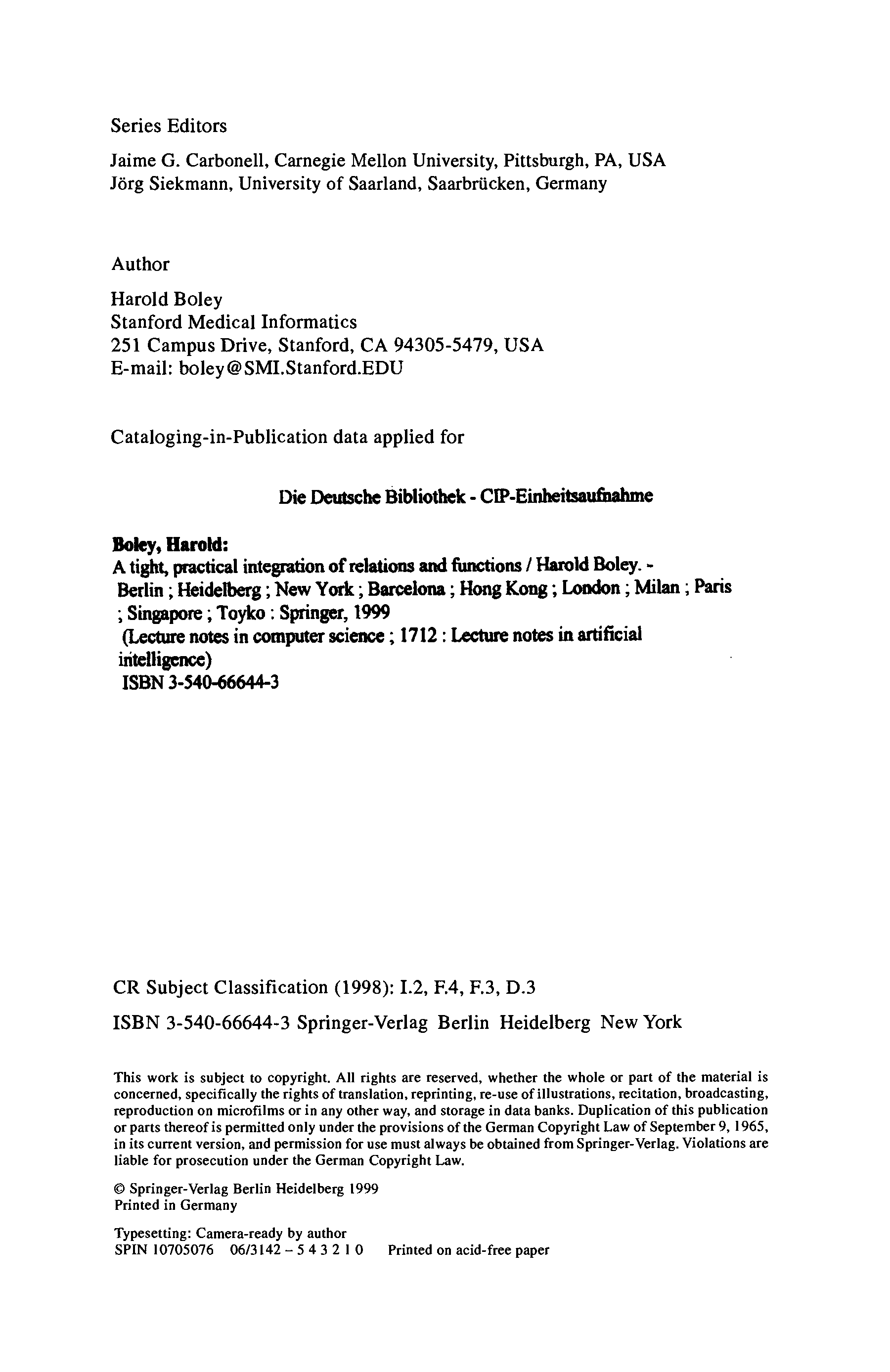 "A tight, practical integration of relations and functions" - читать интересную книгу автора (Harold Boley) |