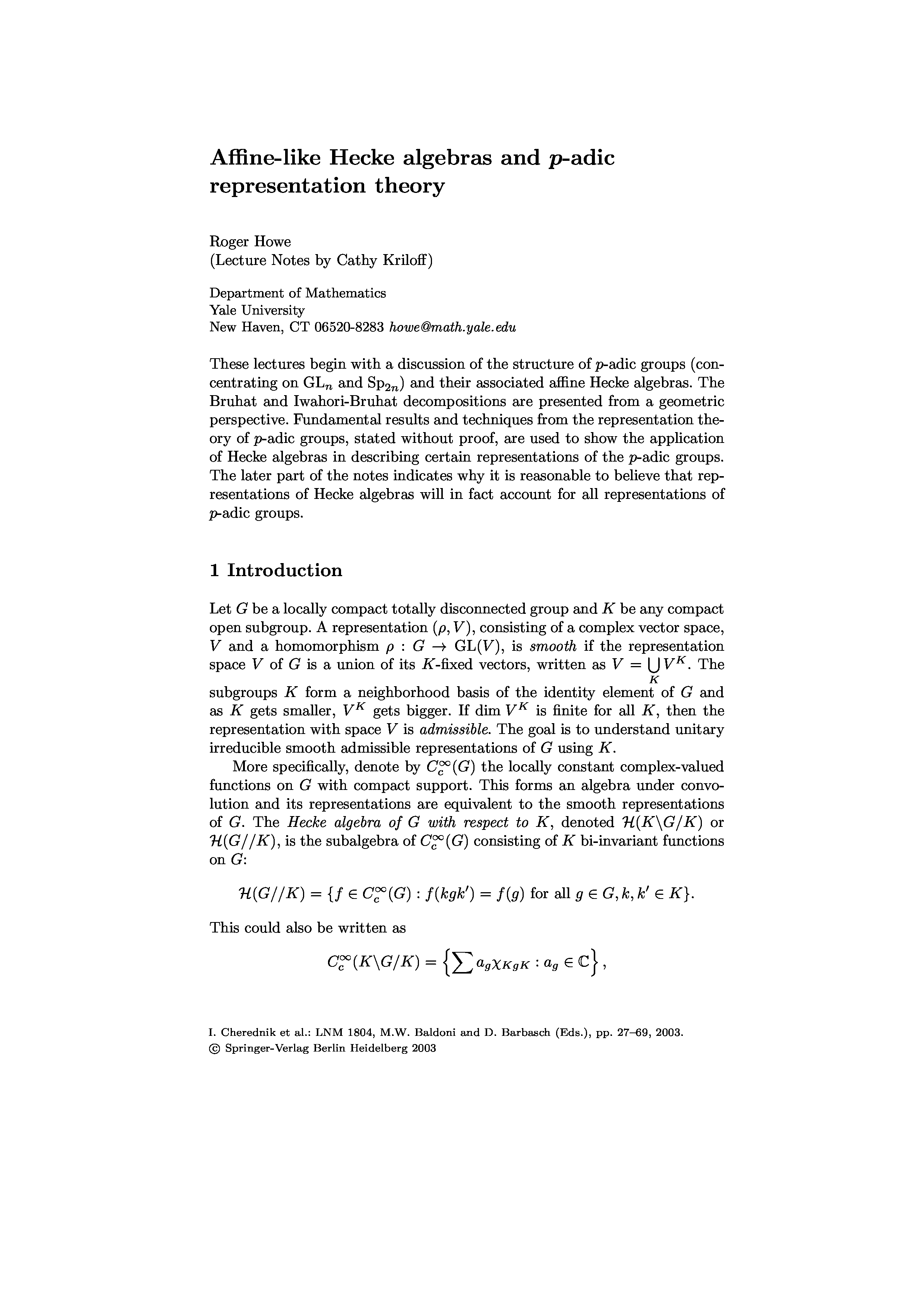 "Iwahori-Hecke algebras and their representation theory: lectures given at the C.I.M.E. summer school held in Martina Franca, Italy, June 28-July 6, 1999" - читать интересную книгу автора (Ivan Cherednik, Yavor Markov, Roger Howe, George Lusztig, Dan Barbasch, M....)
