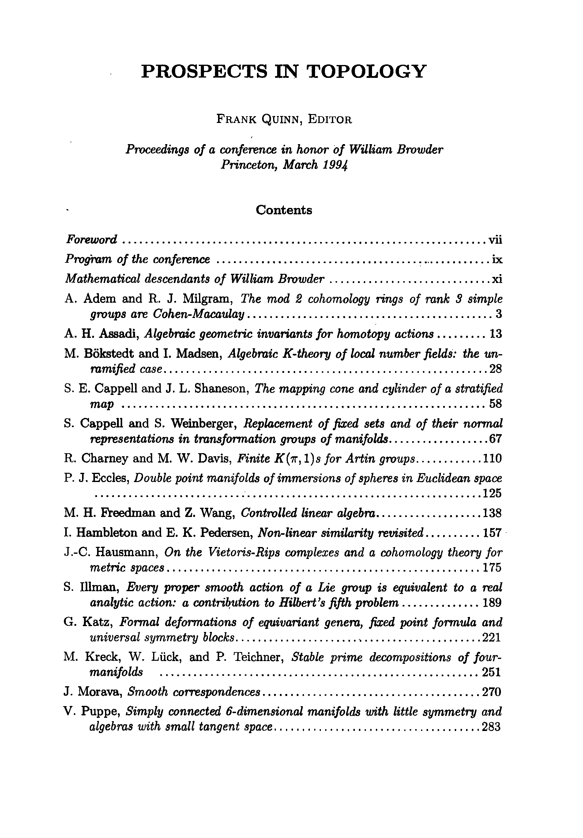 "Prospects in topology: proceedings of a conference in honor of William Browder" - читать интересную книгу автора (Frank Quinn)