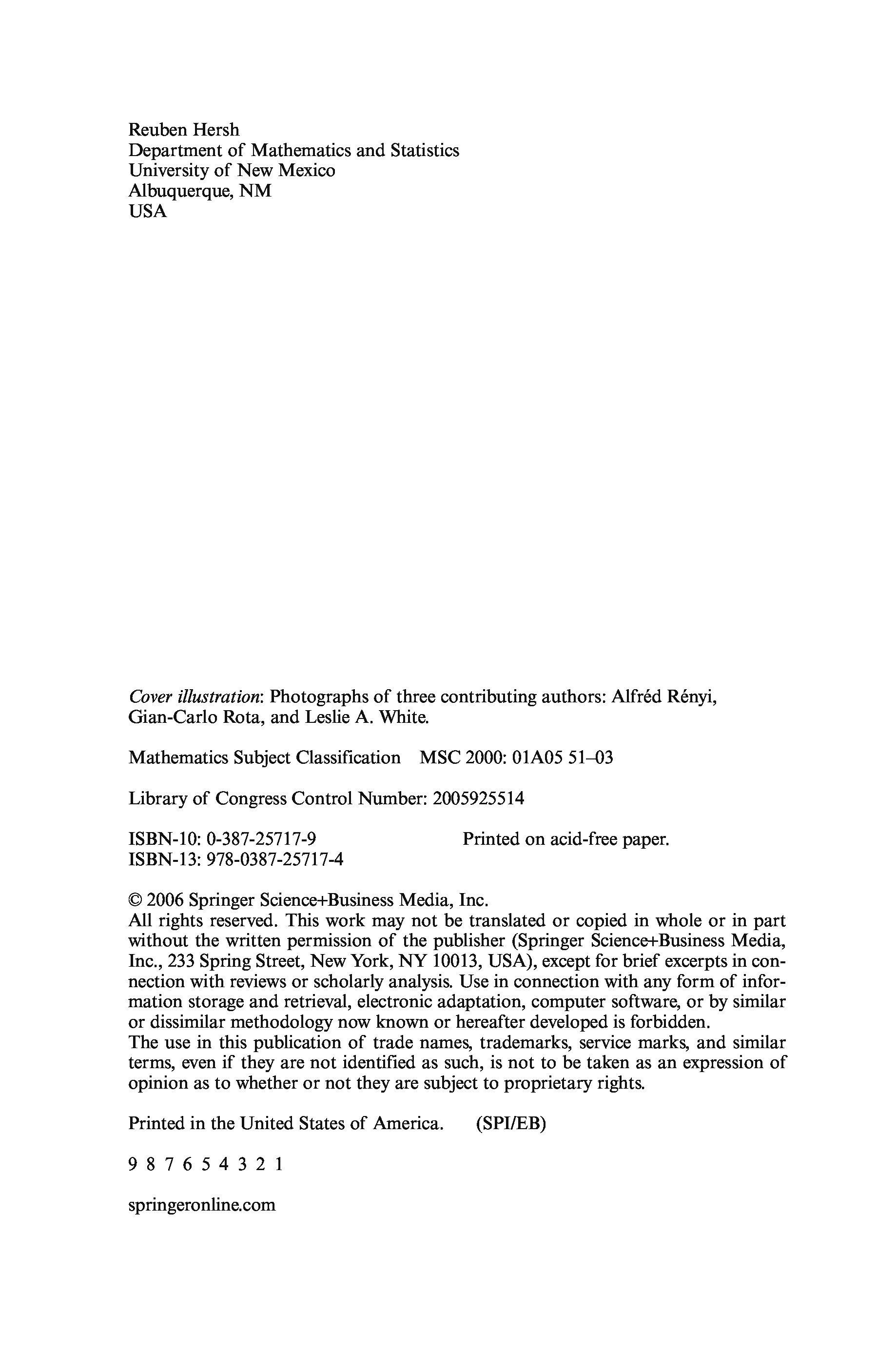 "18 Unconventional Essays on the Nature of Mathematics" - читать интересную книгу автора (Reuben Hersh) |