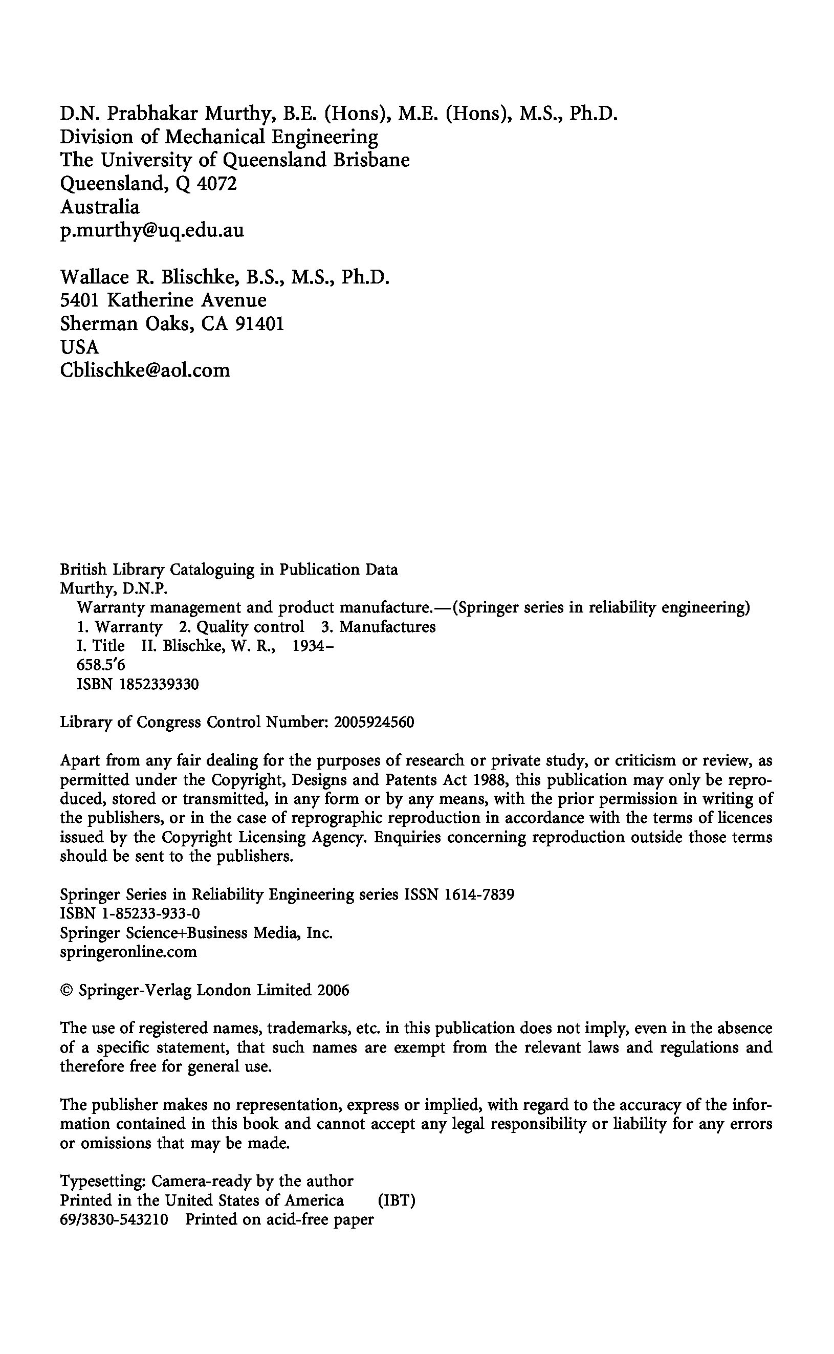 "Warranty Management and Product Manufacture" - читать интересную книгу автора (Dodderi Narshima Prabhakar Murthy, Wallace R. Blischke)