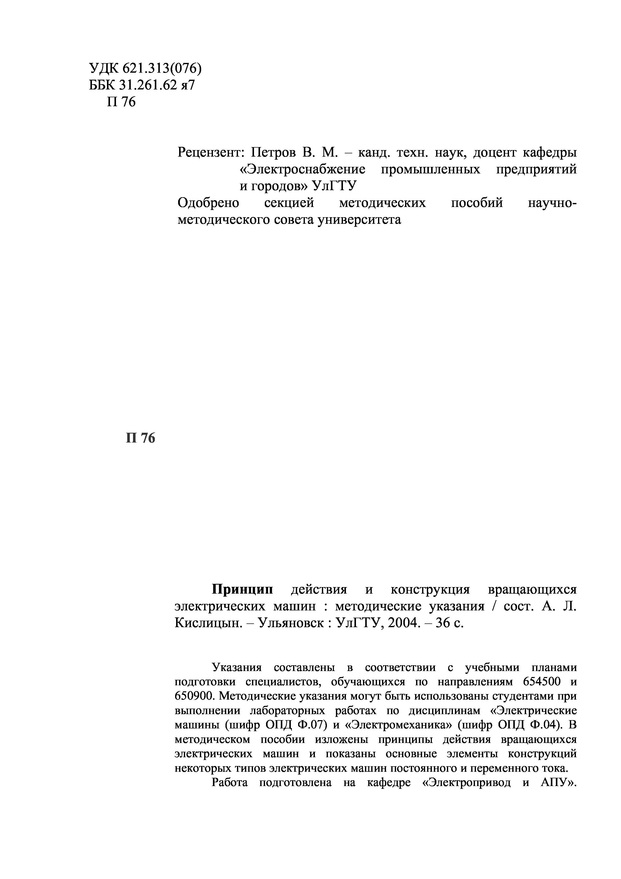 "Принцип действия и конструкция вращающихся электрических машин.методические указания" - читать интересную книгу автора (Кислицын) |