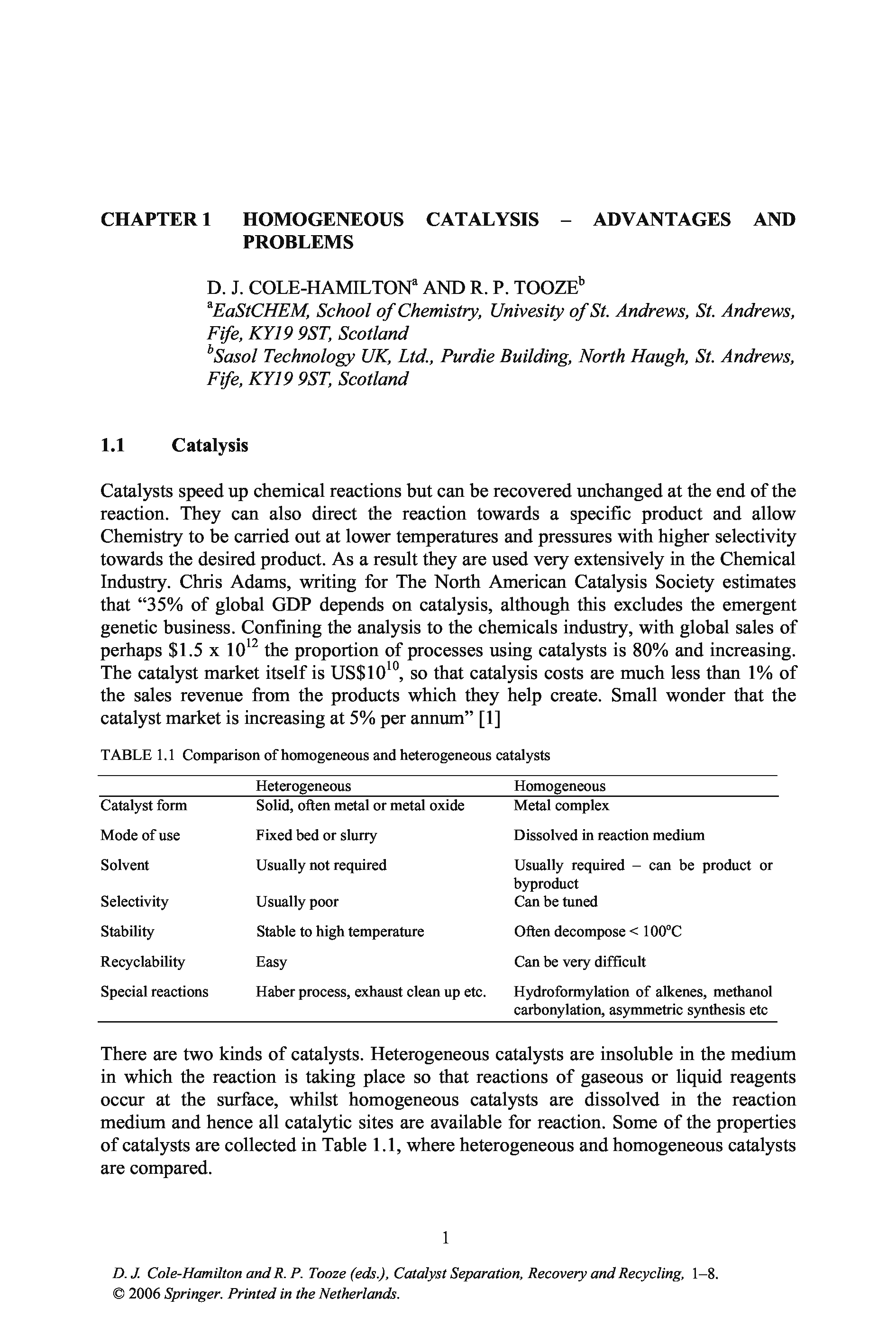 "Catalyst Separation, Recovery and Recycling: Chemistry and Process Design" - читать интересную книгу автора (David J. Cole-Hamilton, Robert P. Tooze) |