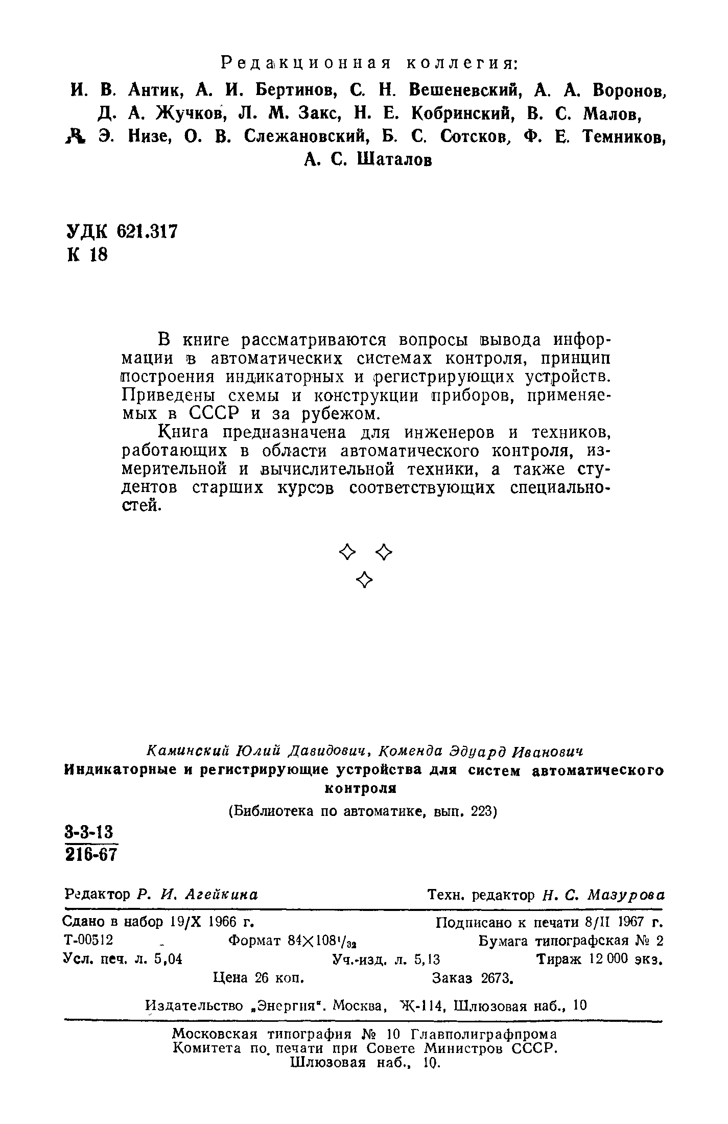 "Индикаторные и регистрирующие устройства для систем автоматического" - читать интересную книгу автора (Каминский Ю.Д., Коменда Э.И.) |