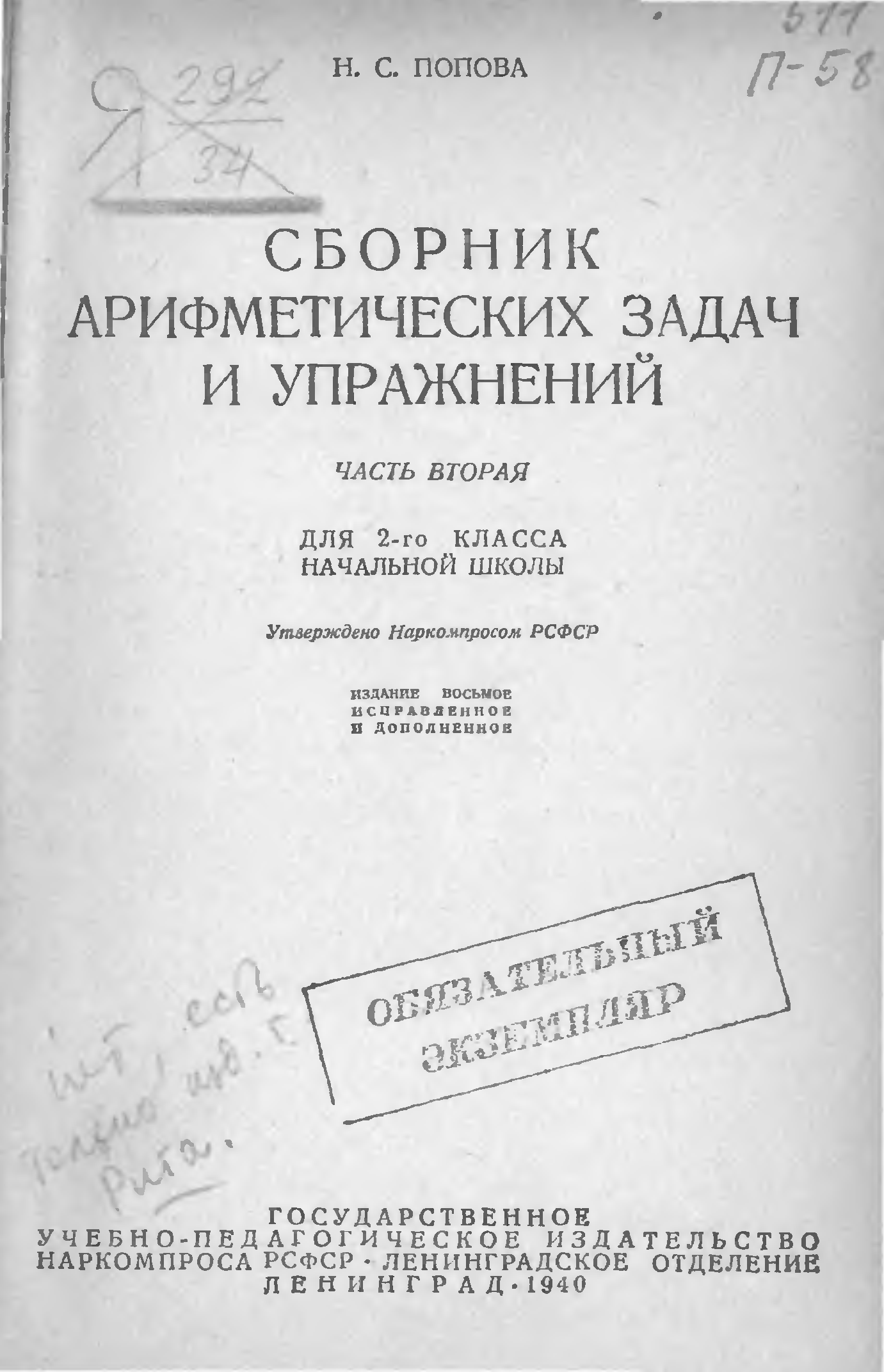 "Сборник арифметических задач и упражнений. Для начальной школы" - читать интересную книгу автора (Попова Н.С.) |