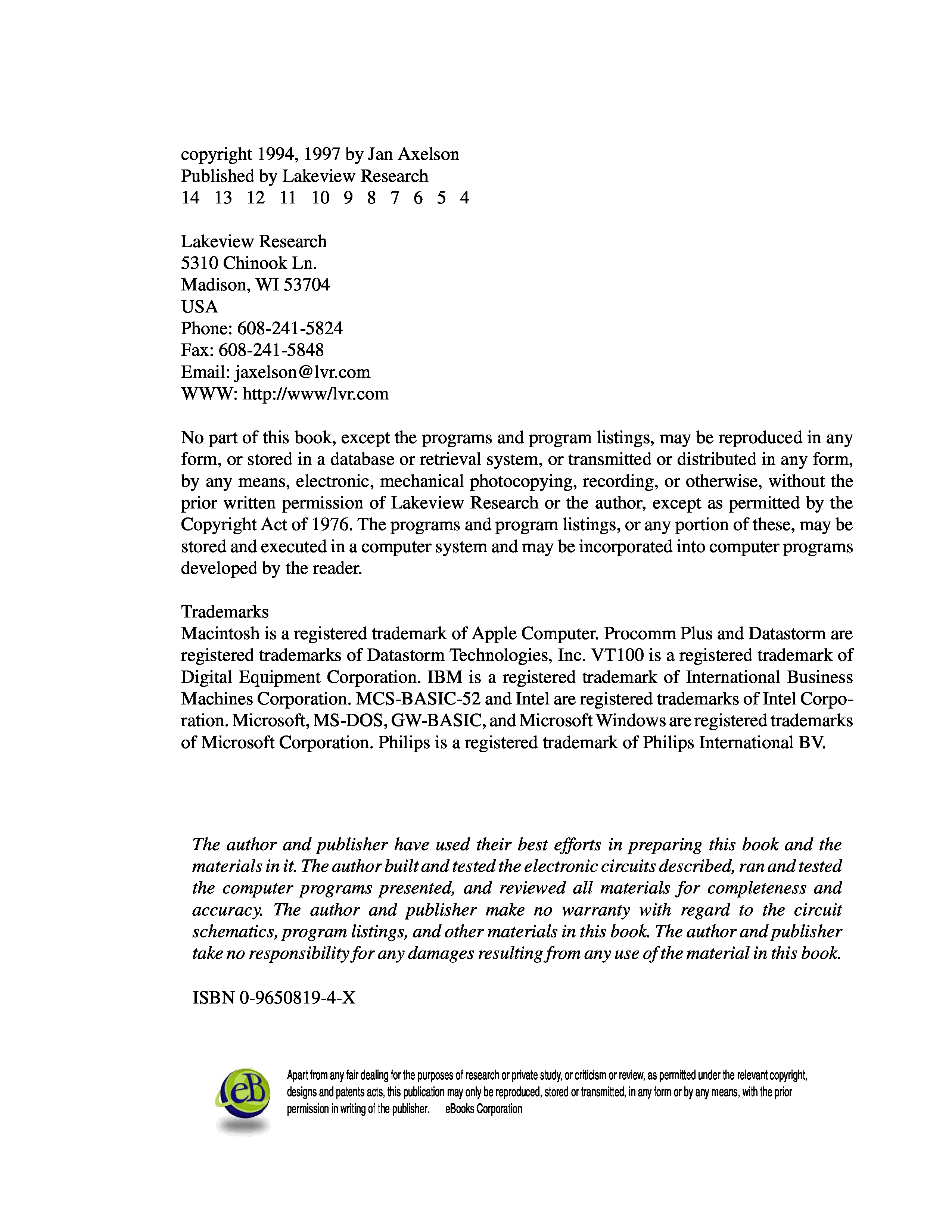 "The Microcontroller Idea Book Circuits, Programs, Applications featuring the 8052-BASIC Microcontroller Jan Axelson" - читать интересную книгу автора (Jan Axelson, Lakeview Research) |