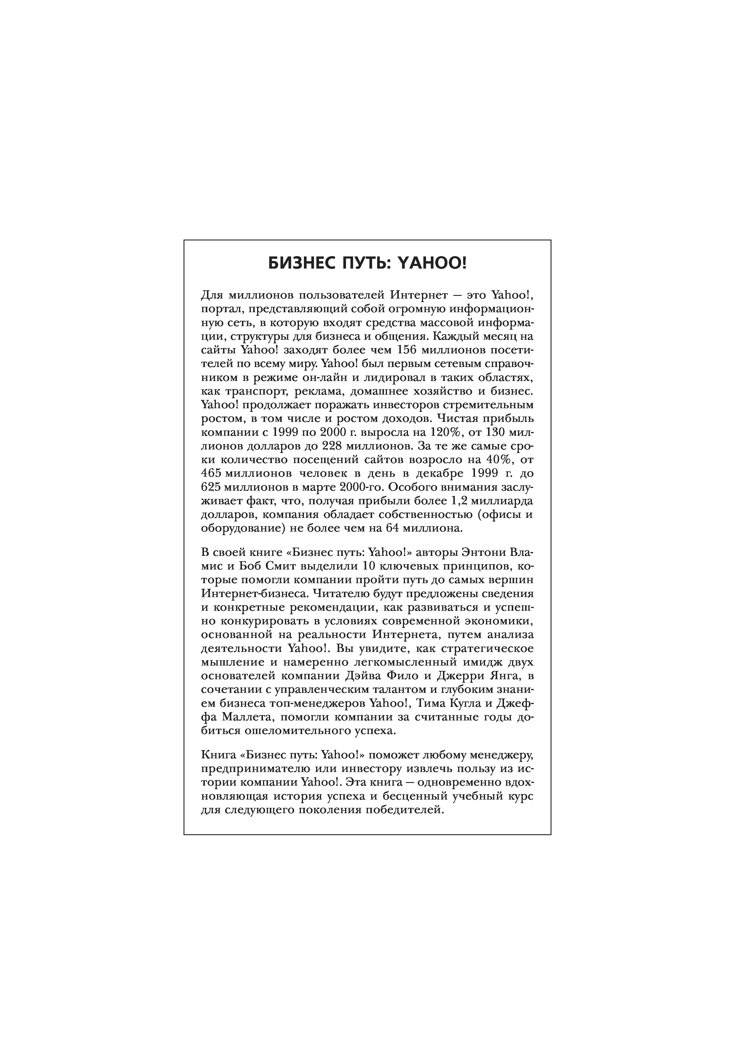 "Бизнес путь: YAHOO! Секреты самой популярной в мире интернет-компании" - читать интересную книгу автора (Вламис Э., Смит Б.) |