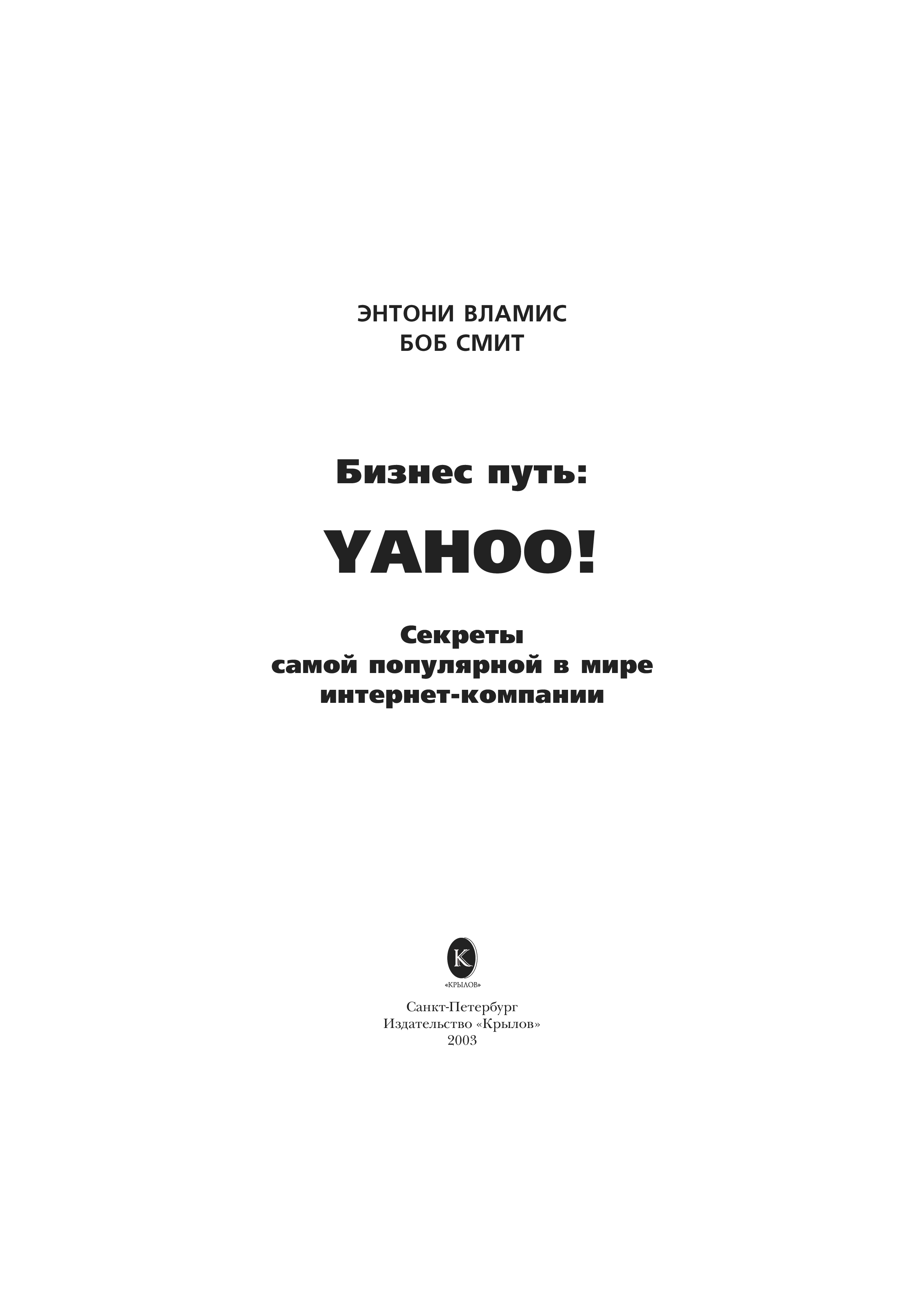 "Бизнес путь: YAHOO! Секреты самой популярной в мире интернет-компании" - читать интересную книгу автора (Вламис Э., Смит Б.) |