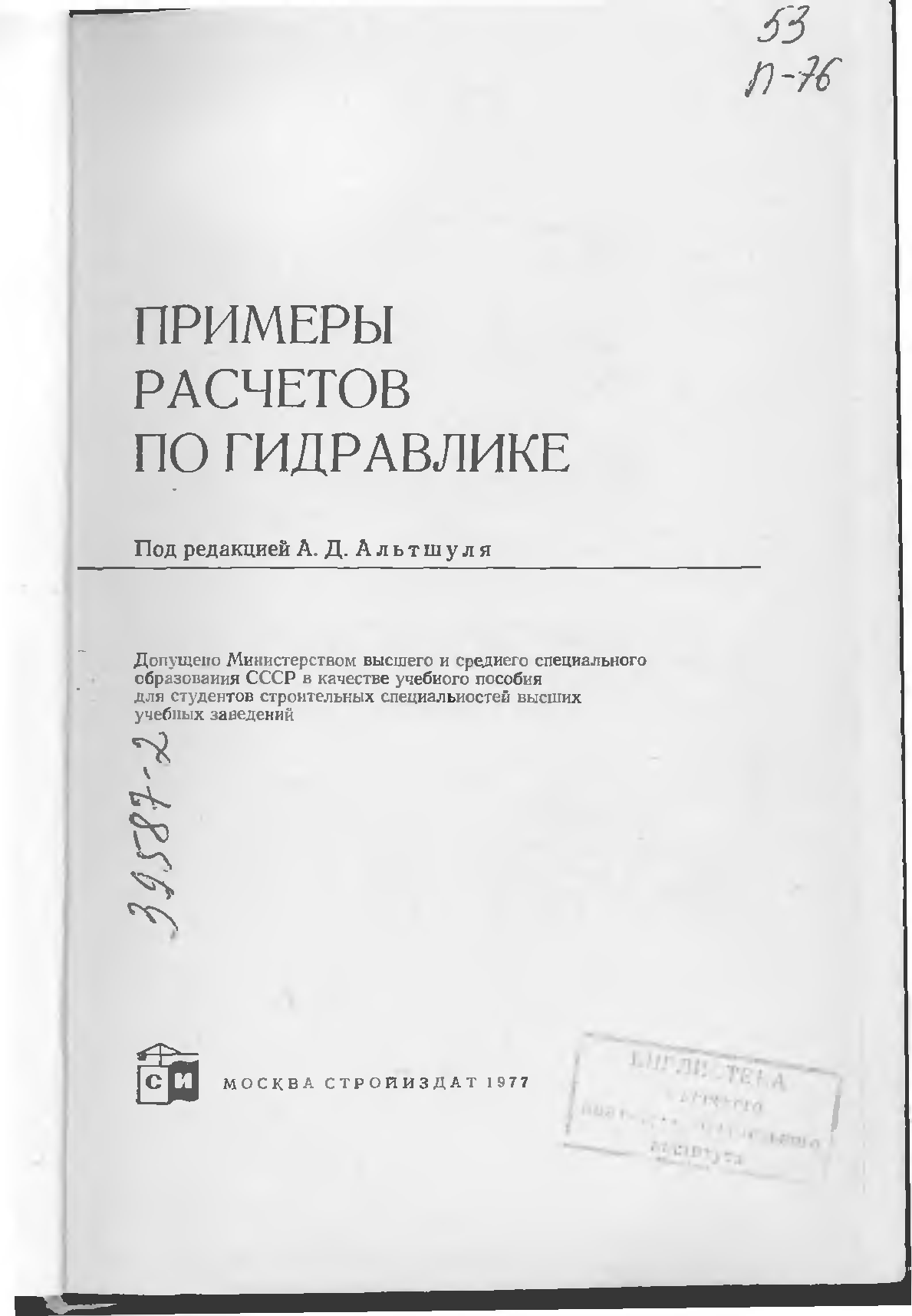 "Примеры расчетов по гидравлике. Учеб. пособие для вузов" - читать интересную книгу автора (А. Д. Альтшуль В И Калицун, Ф Г. Майрановский,...) |