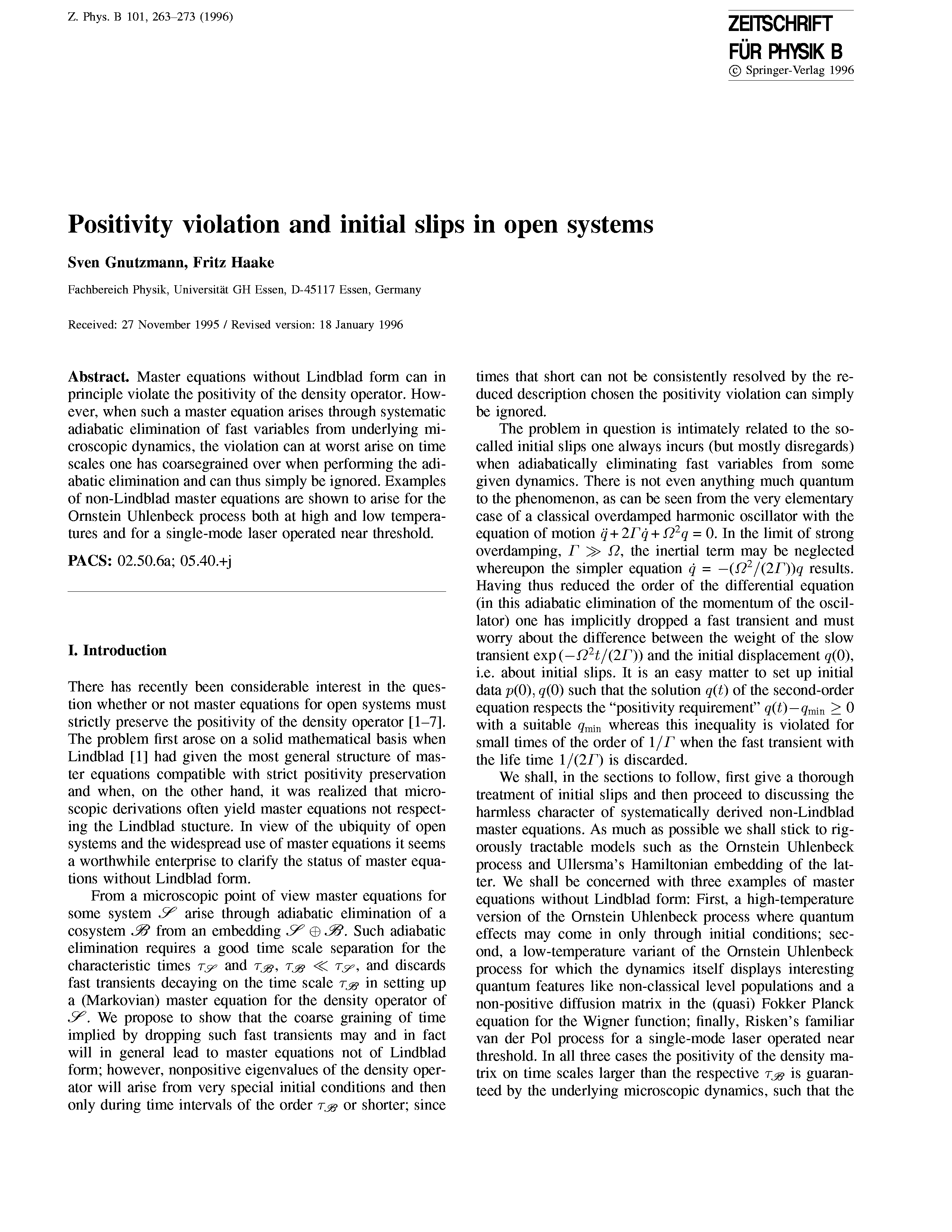 "Positivity Violation and Initial Slips in Open Systems" - читать интересную книгу автора (Gnutzmann S., Haake F.) |