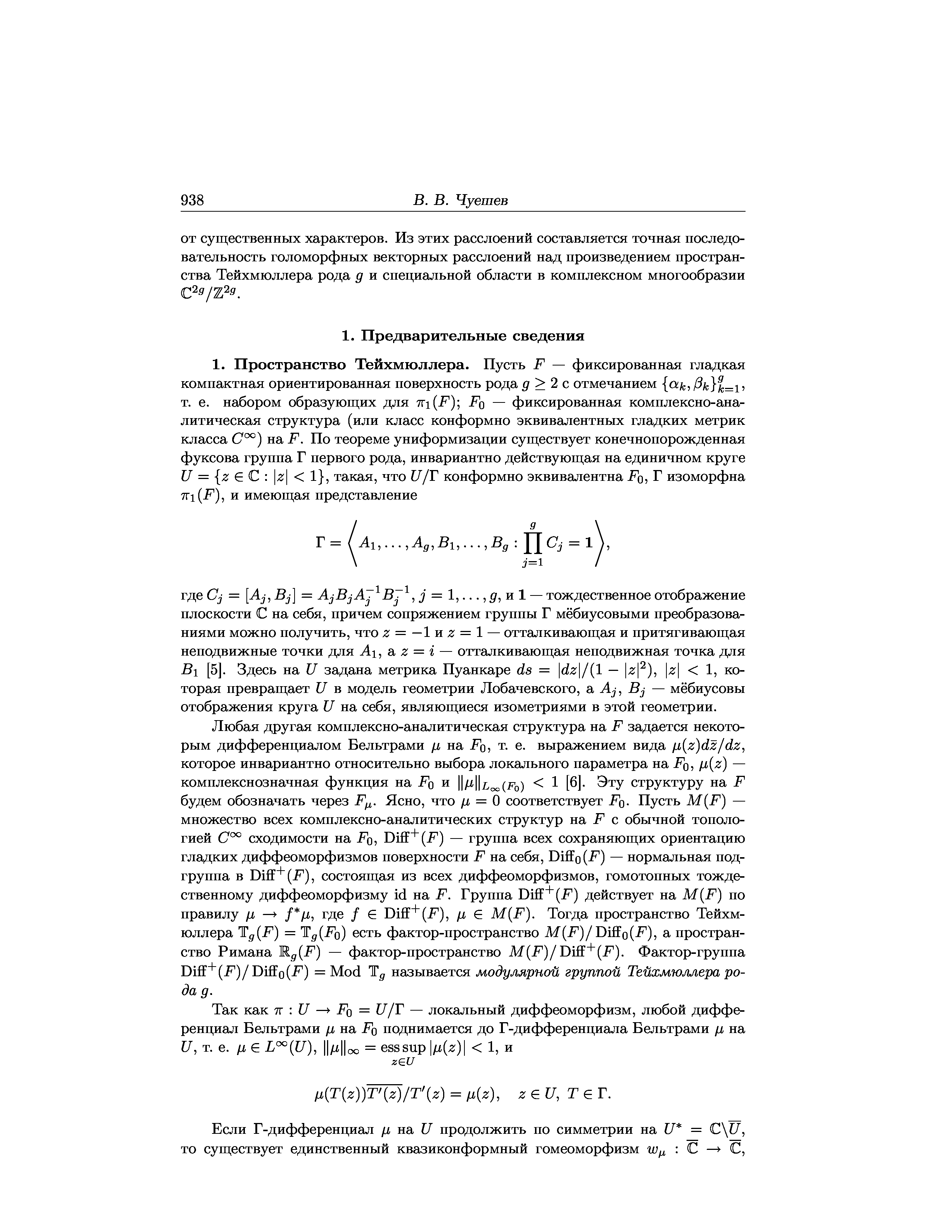 "Векторные расслоение Прима и расслоение Ганнинга над пространством Тейхмюллера" - читать интересную книгу автора (Чуешев В.В.)