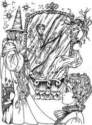 залез в него и упёрся в глухую стенку. Проход исчез. Мальчик в бессилии стукнул кулаком по доскам и опустился на корточки, решая, что делать дальше. Но тут его ужалила мысль о скелете, который недавно сидел на этом самом месте. Глеб как ошпаренный выскочил наружу и наткнулся на Ведунью. — Вот теперь самое время поговорить о том, как тебе вернуться домой, касатик, — подмигнула она, скосив глаза на кубок. В её голосе не было ни злости, ни осуждения за то, что он своевольно взял запретную вещь. Глеб терялся в догадках: кто она — друг или враг? Он решил выяснить всё напрямик. — Откуда здесь кубок Чародея? — спросил он, глядя старухе в глаза. — Кто сказал, что это кубок Чародея? — хихикнула Ведунья. — Я не спутаю его ни с каким другим. — Вот как? Неужели ты думаешь, что сделать копию кубка труднее, чем твоего близнеца? — Так это подделка? — удивился Глеб. — Конечно, — солгала ведьма. — Я же обещала тебе помочь вернуться домой. Этот кубок похож на подарок Чародея только с виду, а на самом деле это обычный сосуд, только отравленный. Поднеси его Гордею, и ты останешься единственным наследником короля. Глеб задумался. Одно дело вывести Гордея на чистую воду и рассказать всем, кто он такой, а совсем другое — отравить. Видя, что мальчик колеблется, Ведунья нетерпеливо добавила: — Напрасно ты думаешь, что тебе поверят, если расскажешь обо всём увиденном. К тому же есть ещё одна причина, по которой ты должен сделать выбор. Каждому магическому заклинанию отпущен свой срок. Заклятие близнецов истекает в день твоего рождения. Зеркало не может дольше оставаться пустым. Оно поглотит одного из вас. Если не победишь Гордея, то пленником зеркала станешь ты. В комнате повисла зловещая тишина. Рваные мысли вихрем проносились в голове мальчика: «К чему сомнения? Гордей бы не колебался ни минуты… Но ведь отравить человека — это преступление… Нашёл кого жалеть. Гордей бы не остановился перед ядом… Но мне ненавистна его жестокость… Вот потому его и надо убрать с дороги, чтобы он больше не причинял зла». — Я сделаю это, — выдохнул Глеб. |