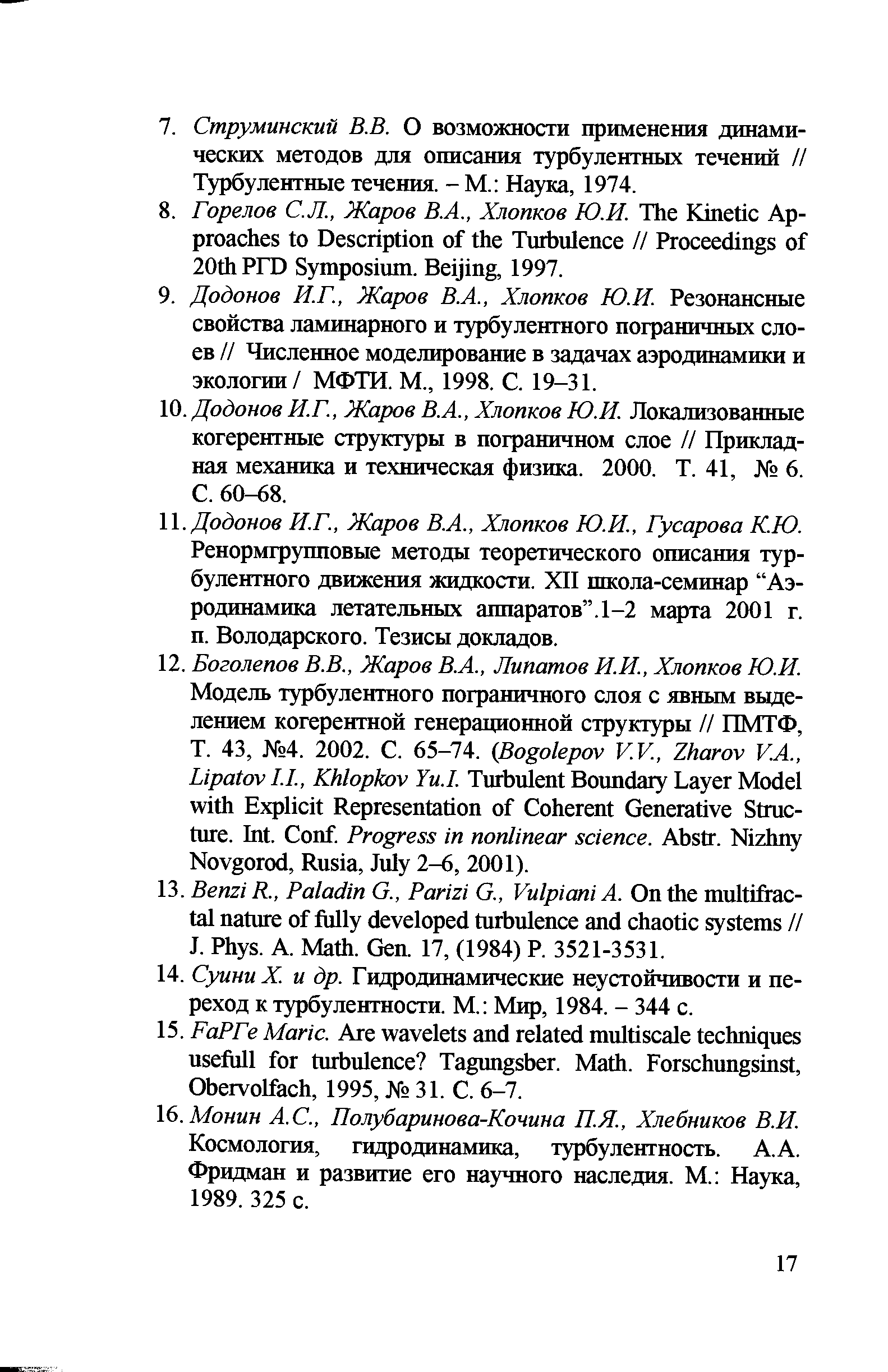 "Ренормгрупповые методы описания турбулентных движений несжимаемой жидкости" - читать интересную книгу автора (Хлопков Ю.И., Жаров В.А., Горелов С.Л.) |