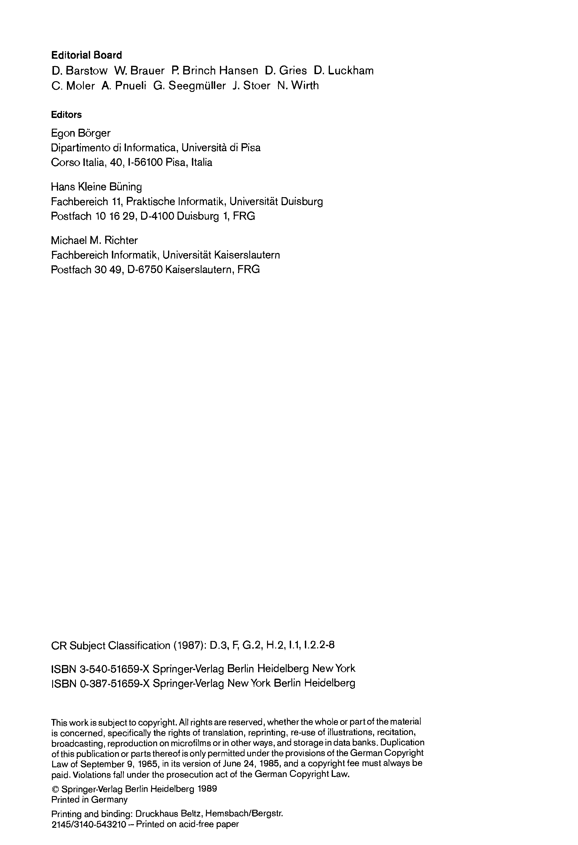 "CSL '88 Computer Science Logic 2 conf" - читать интересную книгу автора (Egon Börger, Hans Kleine Büning, Michael M. Richter) |
