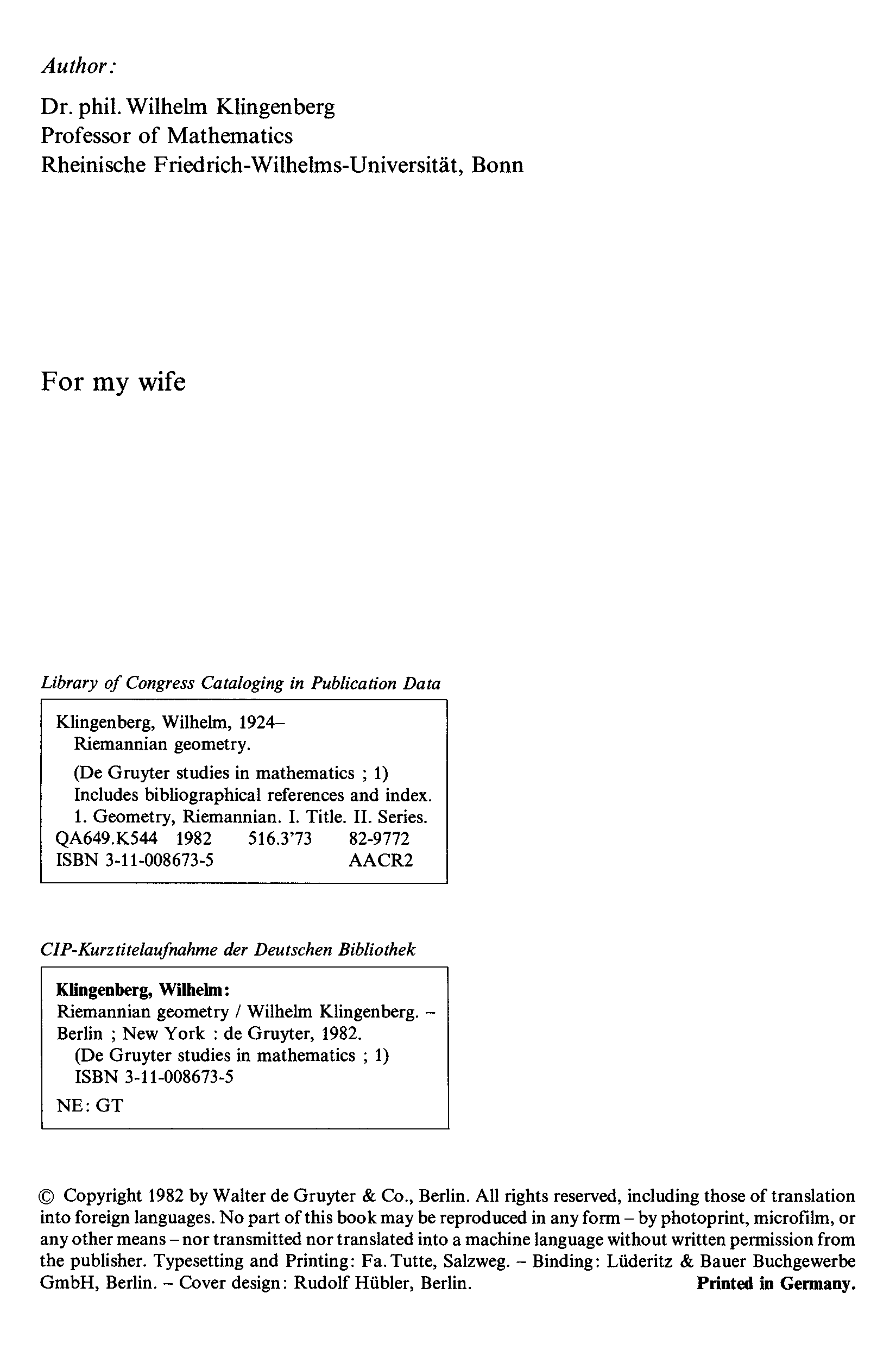 "Riemannian geometry" - читать интересную книгу автора (Wilhelm P. A. Klingenberg)