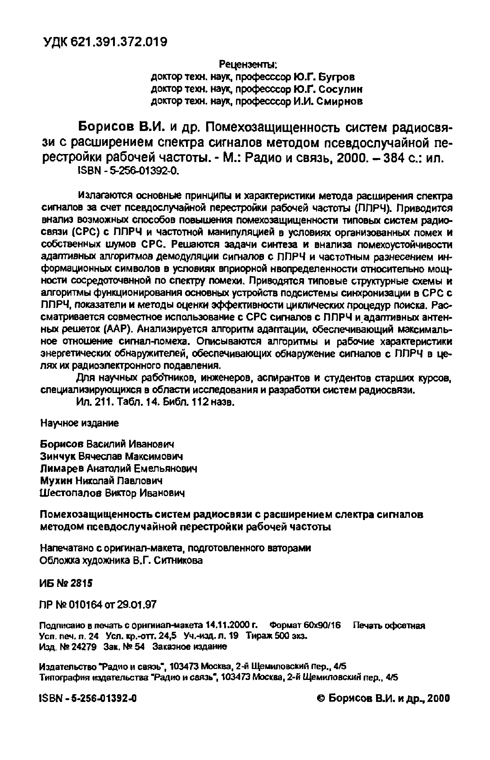 "Помехозащищенность систем радиосвязи" - читать интересную книгу автора (Борисов В.И., Зинчук В.М., Лимарев А.Е.) |