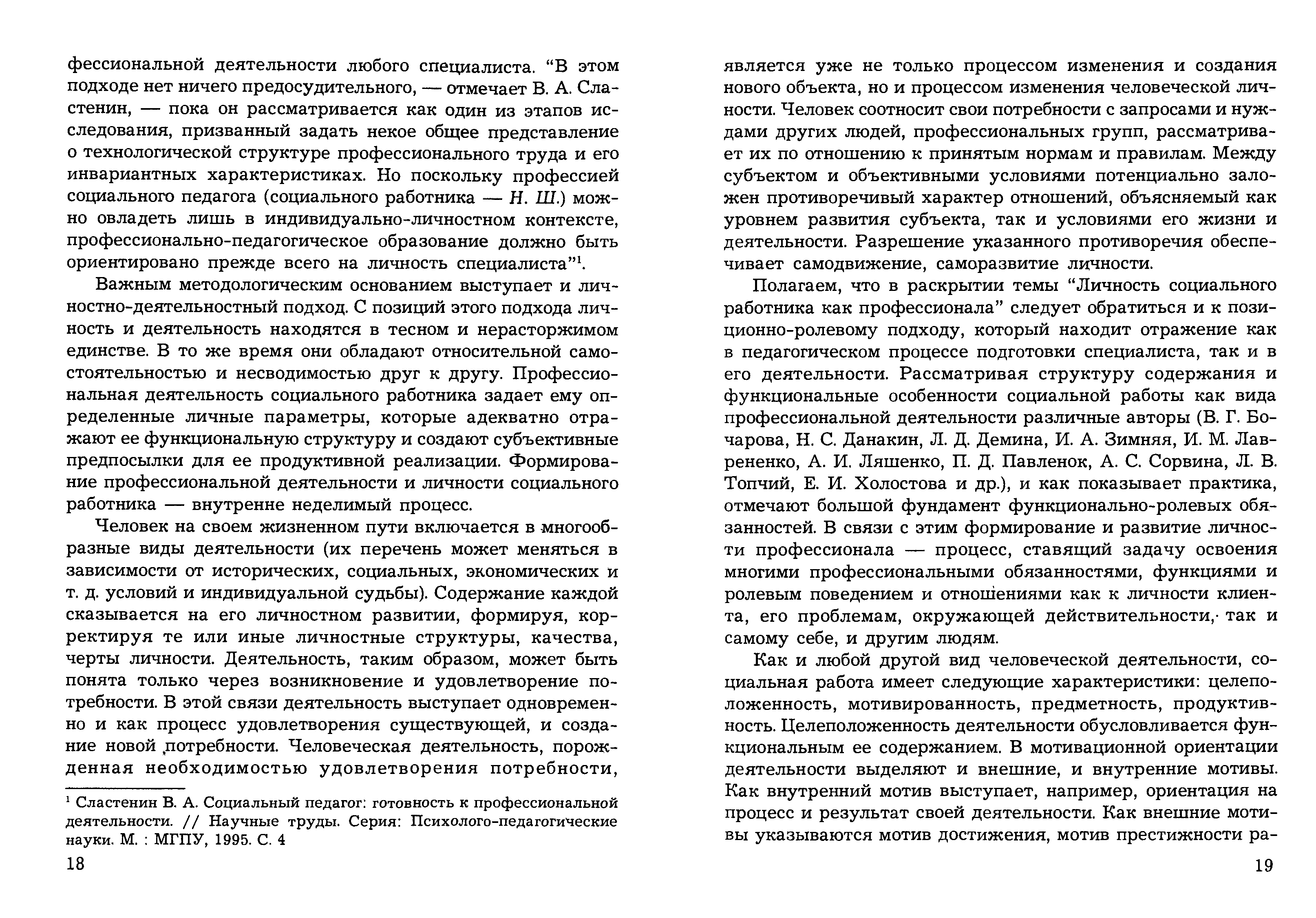 "Формирование и развитие личности социального работника как профессионала" - читать интересную книгу автора (Шмелева Н.Б.)