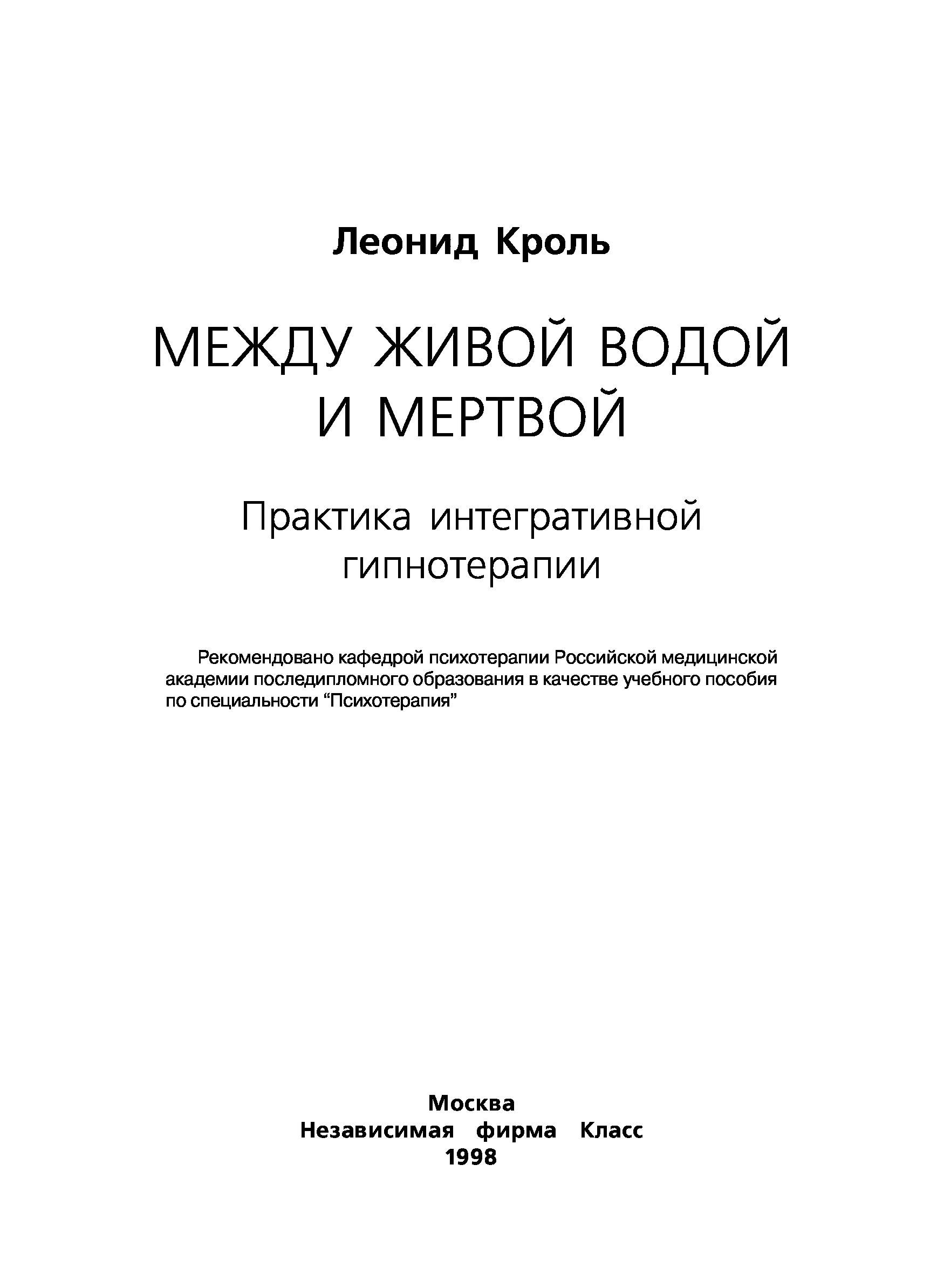 "Между живой водой и мертвой. Практика интегративной гипнотерапии" - читать интересную книгу автора (Леонид Кроль)