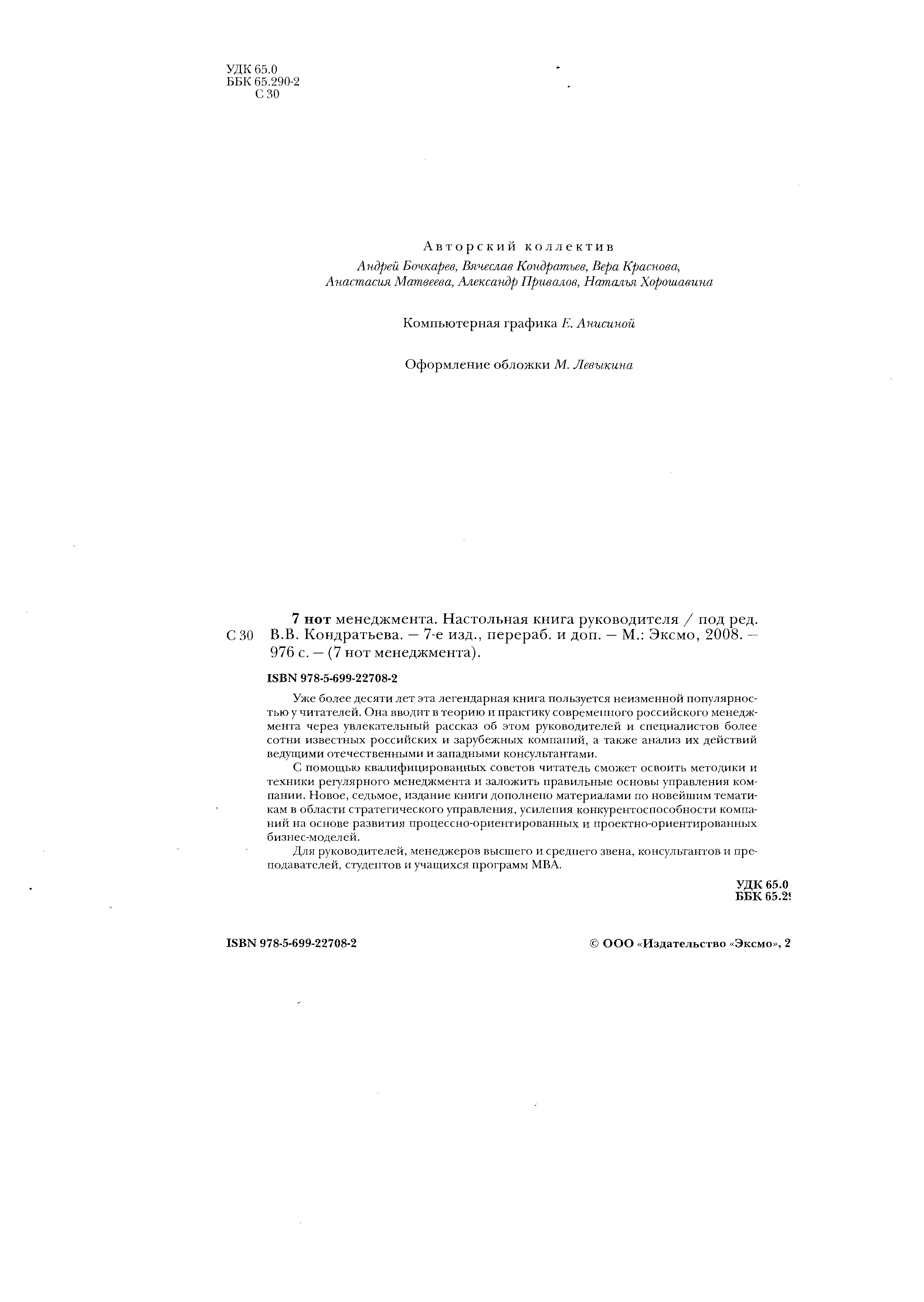 "7 нот менеджмента. Настольная книга руководителя" - читать интересную книгу автора (Бочкарев А., Кондратьев В., Краснова В.,...) |