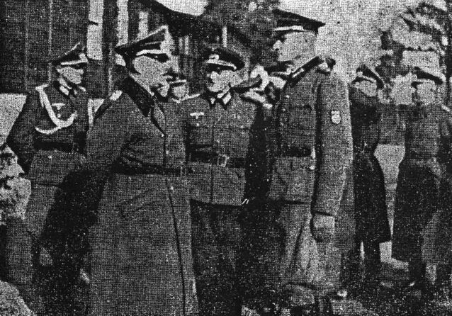 Командир 1 Дивизии Р.О.А. генерал-майор С.К.Буняченко и начальник штаба п/полковник Николаев Перед докладом о плане боя, генерал Буняченко в своем вступительном слове сказал, что условия, в которых придётся вести бой, весьма неблагоприятны для наступления и, наоборот, весьма благоприятны для обороняющихся советских частей и что он очень сомневается в успехе наступления. Генерал Буняченко сказал, что он вынужден предпринять наступление в силу полученного от генерала Власова приказа. Главным вопросом генерал Буняченко поставил полное обеспечение его заявки на огневую поддержку артиллерией и поддержку с воздуха в том объёме, в каком он это предусматривал в своём плане боя. План боя здесь же был одобрен командованием 9-й армии и утверждён. Наступление было назначено на 05.00 часов 11-го апреля. Интересно отметить то обстоятельство, что немецкое командование отказало дивизии в выдаче боеприпасов для проведения этой боевой операции. Немцы потребовали использовать имеющиеся в дивизии запасы, обещая впоследствии их пополнить. Генерал Буняченко согласился на это требование. Надо сказать, что в действительности в Первой дивизии боеприпасов было более, чем требовалось, но в штаб 9-й армии умышленно были даны неправильные сведения, сократив в них количество имеющихся боеприпасов более, чем в два раза. Остаток дня прошел в подготовке к бою. Дивизионная и полковая артиллерия занимала огневые позиции и проводила пристрелку, пехота сосредотачивалась на исходных позициях для наступления. Немецкие части, находящиеся в обороне, очень неспокойно провели ночь накануне боя — впереди их находились вражеские окопы, где сидели русские солдаты Красной армии, а сзади — расположились в исходном положении для наступления тоже русские солдаты Первой власовской дивизии. В ближайшем немецком тылу стояли не участвовавшие в бою полки Первой дивизии, также полностью готовые к боевым действиям. Чтобы опознавать ночью друг друга, между власовскими и немецкими частями был установлен пароль: «Гейль Власов!», которым пользовались, как немецкие, так и русские солдаты при встрече друг с другом. Злая ирония судьбы — повсюду в эту ночь на окрик часовых — «Стой! Кто идёт?» — немецкие и русские солдаты и офицеры отвечали «Гейль Власов!»… С севера, со стороны Франкфурта должны были наступать на предмостное укрепление подразделения второго полка, а с юга, то стороны Фюрстенберга. — подразделения третьего полка. Первый полк находился в резерве, остальные же части дивизии, в полной боевой готовности, стояли в своих районах на подготовленной второй линии обороны и в боевой операции не участвовали. Для проведения этого боя совершенно не было необходимости держать всю дивизию в таком боевом напряжении. Но психоз, которым было одержимо командование дивизии о враждебных намерениях немцев, всегда заставлял думать, что обстановка требовала принимать предельные меры предосторожности. В 4 часа 45 минут 11-го апреля артиллерия открыла огонь по предмостному укреплению, а в 5.00 с севера и юга развёрнутые в боевые порядки роты пошли в наступление в узкой воронке, по едва возможной для прохождения заболоченной местности. Для советских войск это наступление было совершенно неожиданным, несмотря даже на произведённую накануне артиллерийскую пристрелку и короткую, пятнадцатими