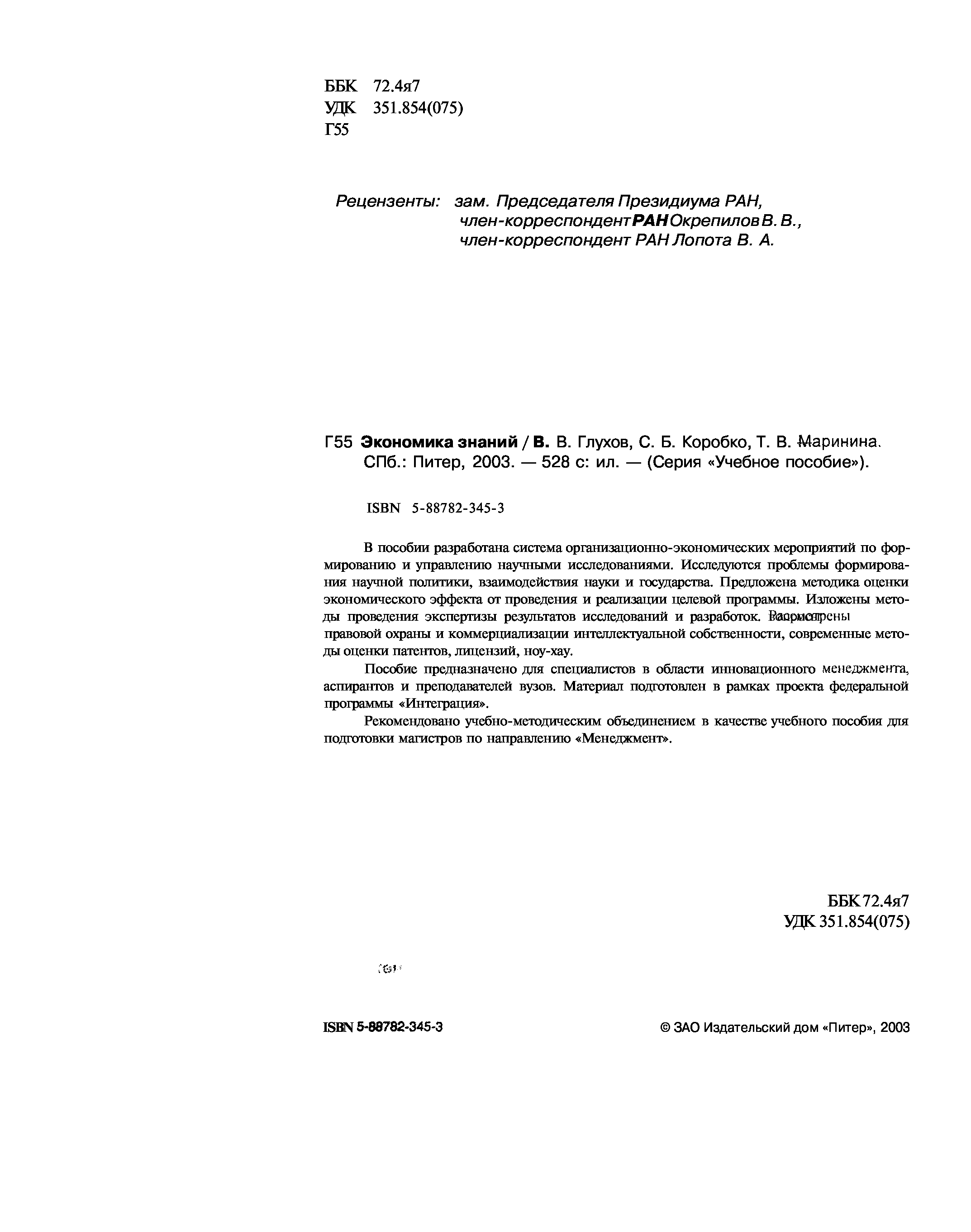(В. В. Глухов, С. Б. Коробко, Т. В. Маринина)