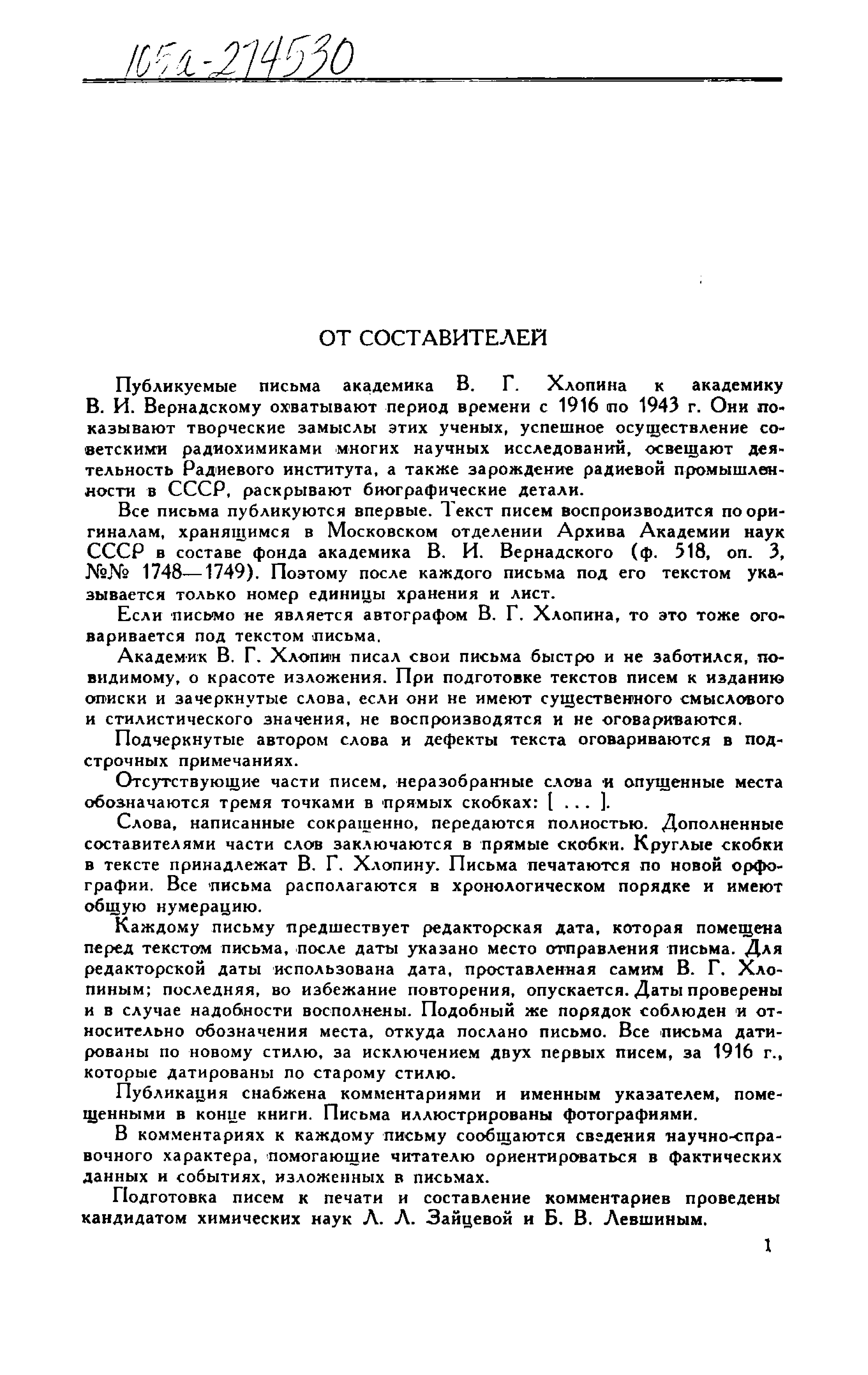 "Письма В.Г.Хлопина к В.И.Вернадскому (1916-1943)" - читать интересную книгу автора (В.Г.Хлопин, В.И.Вернадский)