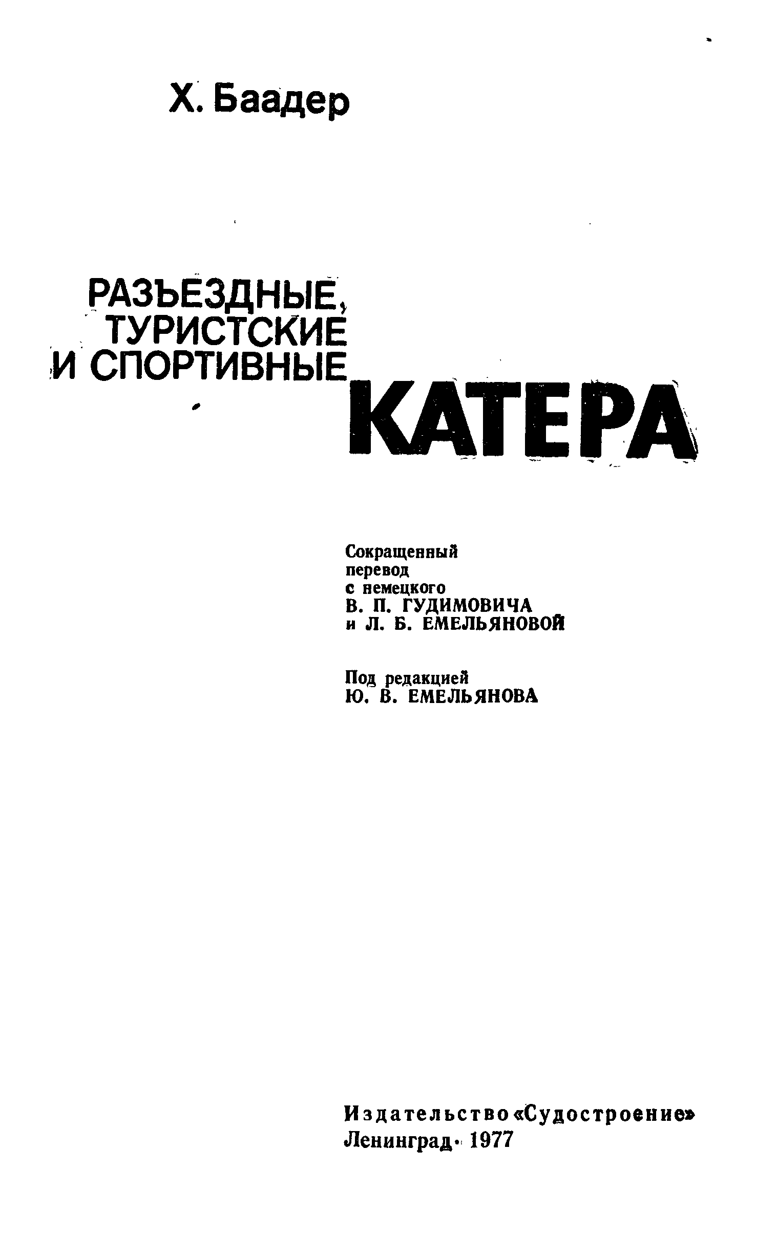"Разъездные, туристические и спортивные катера" - читать интересную книгу автора (Баадер Х.)