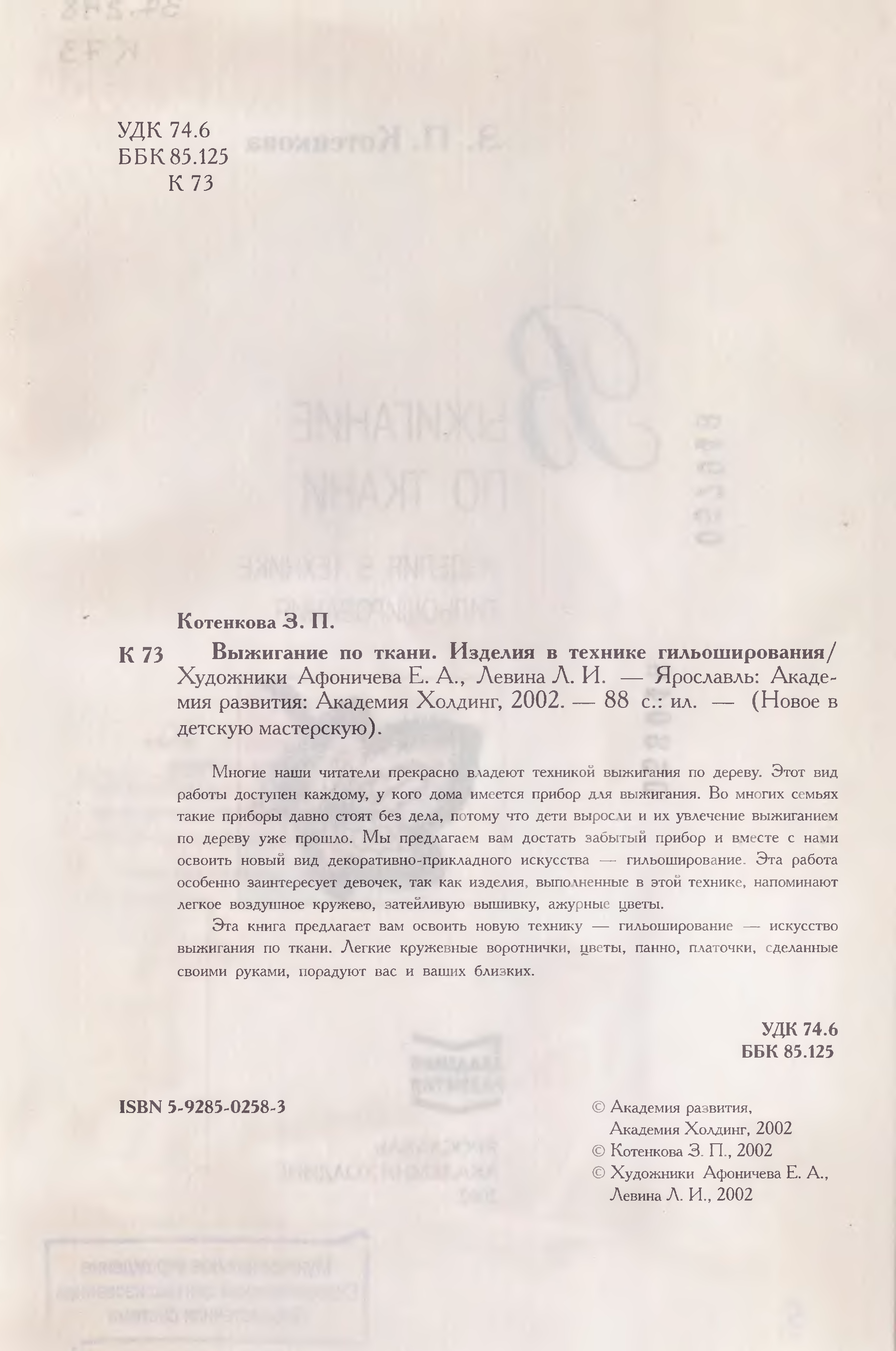 "Выжигание по ткани. Изделия в технике гильоширования" - читать интересную книгу автора (Котенкова З.П.) |