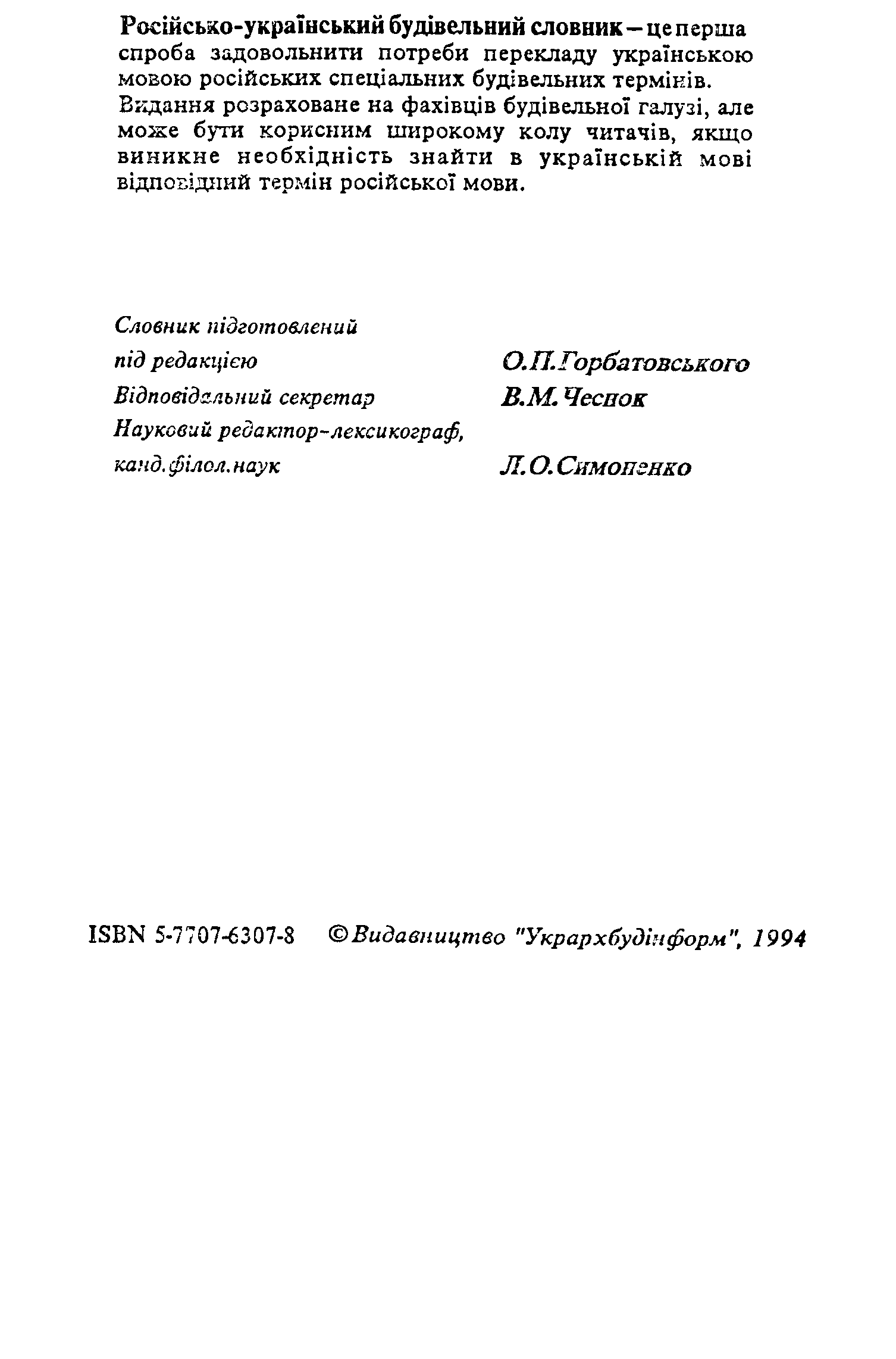 "Русско-украинский строительный словарь" - читать интересную книгу автора (под. ред. О.П. Горбатовского) |