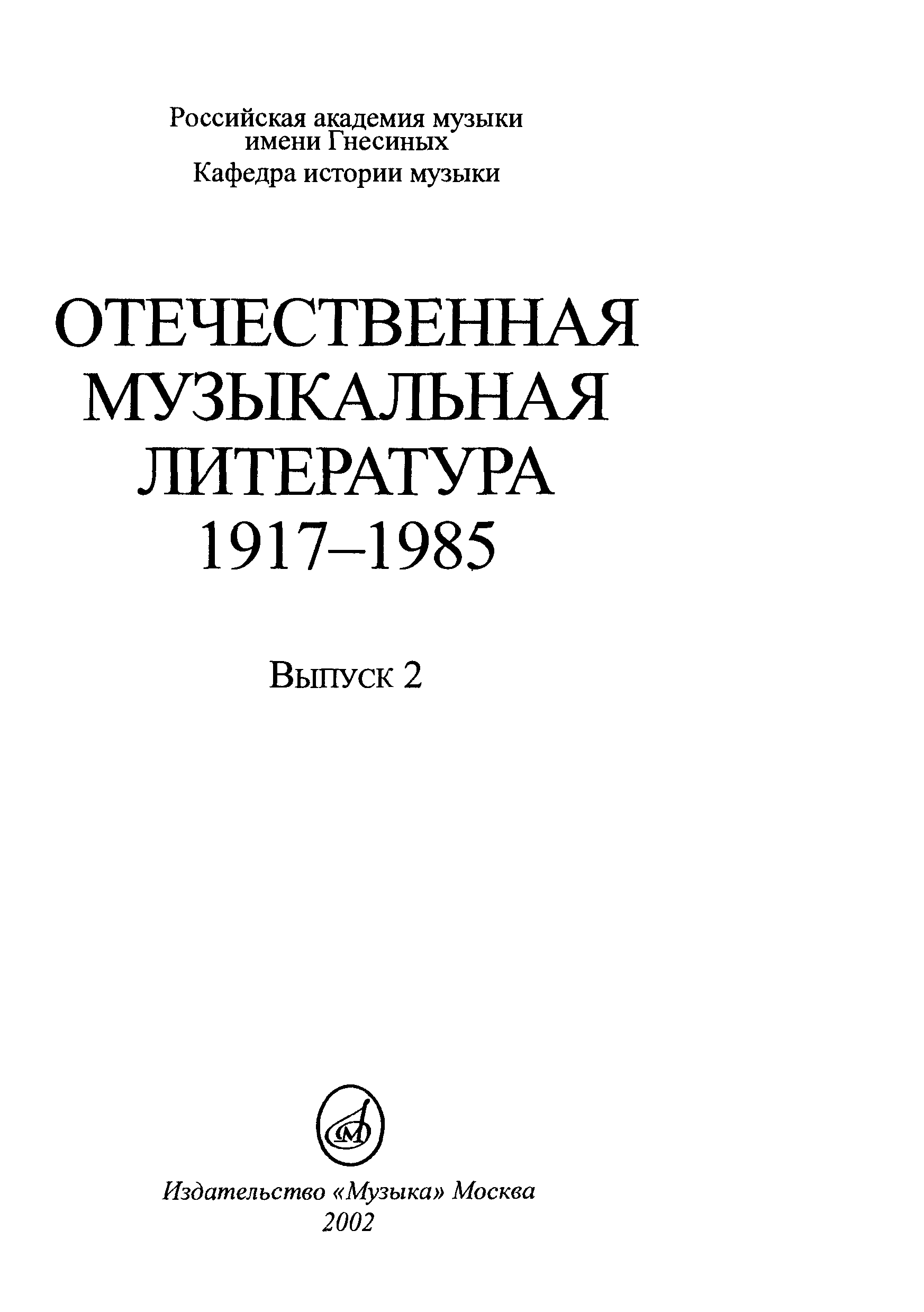 "Отечественная музыкальная литература: 1917 - 1985. Выпуск 2" - читать интересную книгу автора (Лейе Т. Е., Келле В. М., Масловская Т. Ю.,...) |