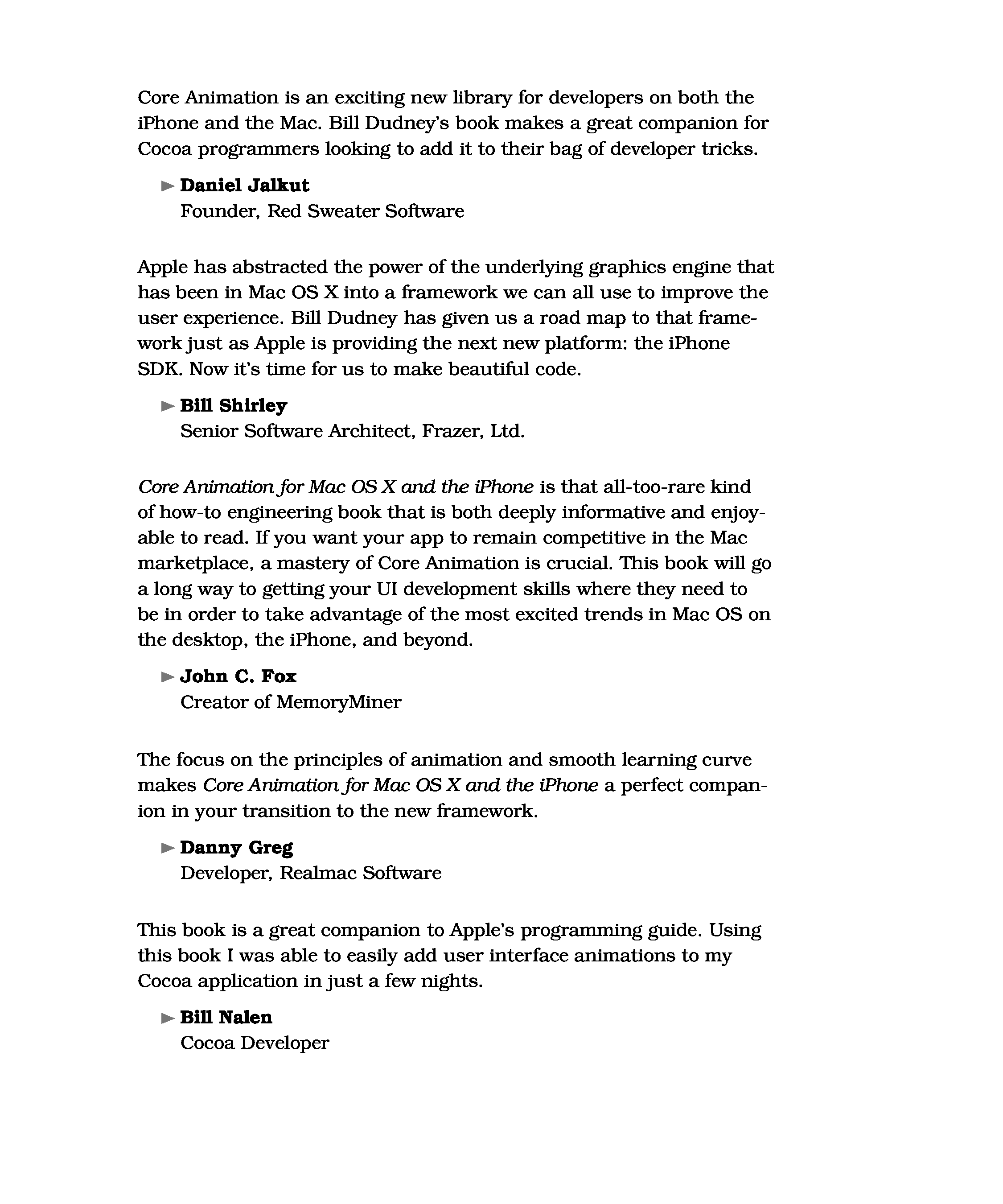 "Core animation for Mac OS X and the iPhone: Creating compelling dynamic user interfaces" - читать интересную книгу автора (Bill Dudney) |