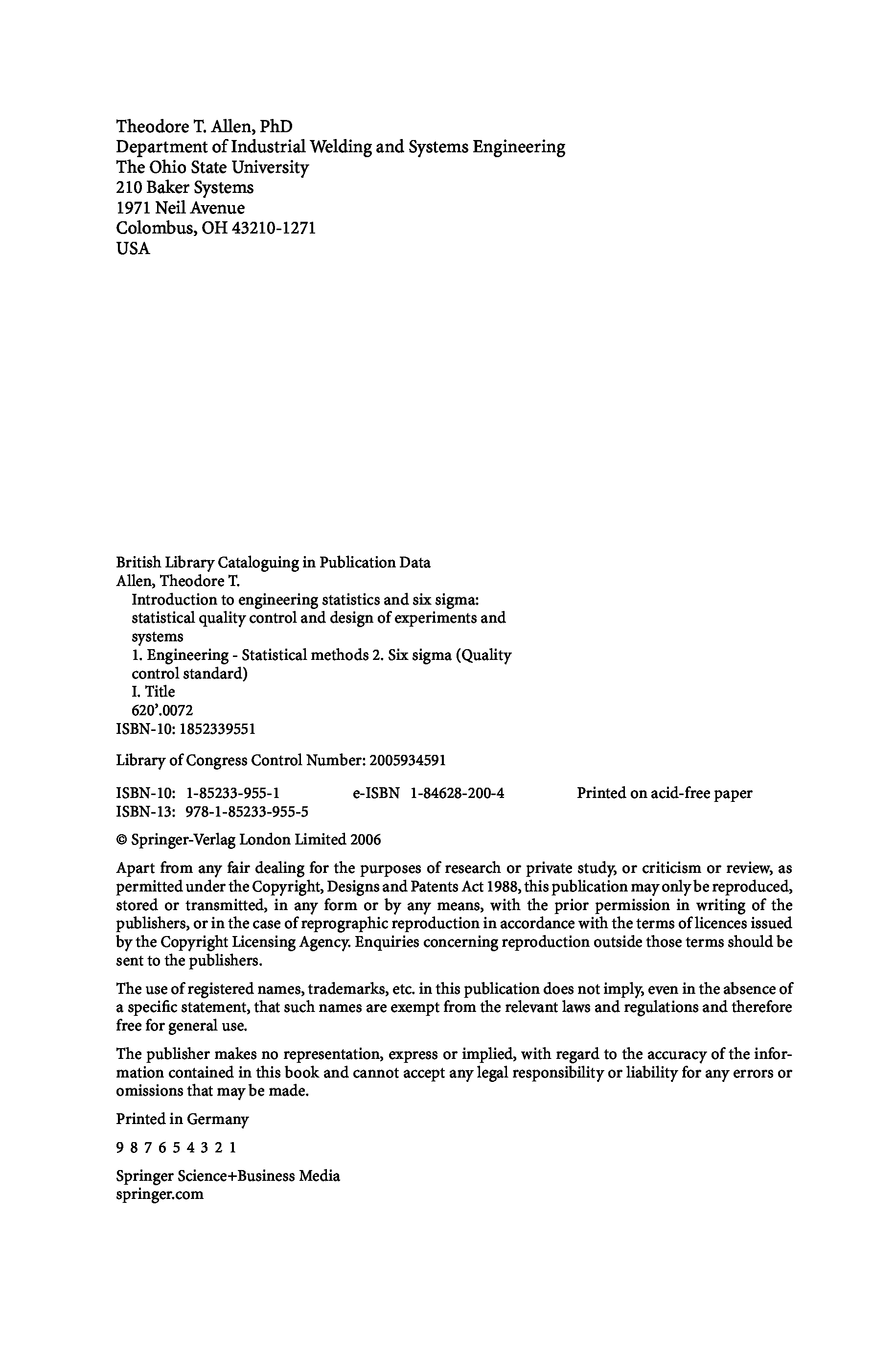 "Introduction to Engineering Statistics and Six SIGMA: Statistical Quality Control and Design of Experiments and Systems" - читать интересную книгу автора (Theodore T. Allen)