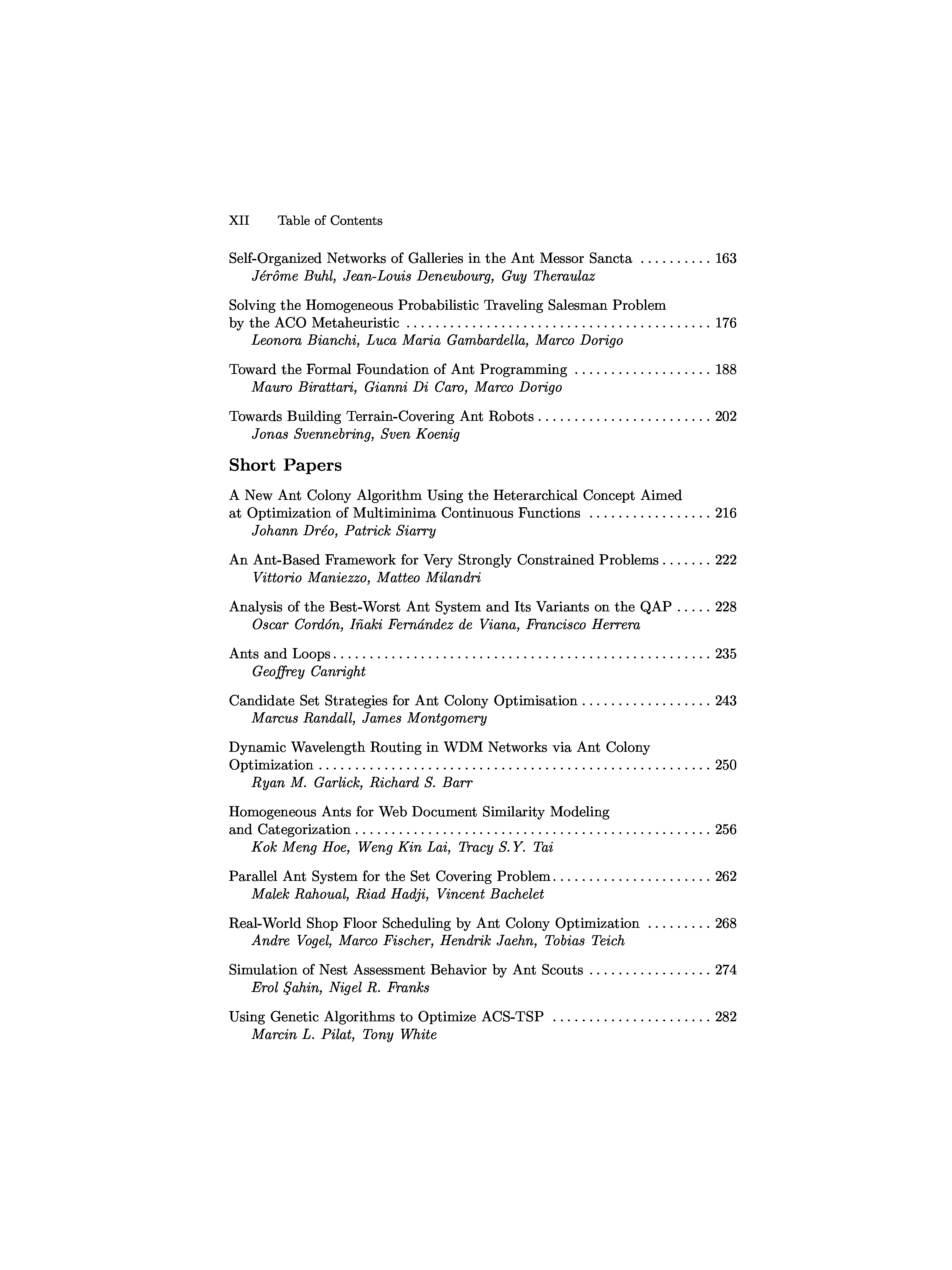 "Ant Algorithms, 3 conf., ANTS 2002" - читать интересную книгу автора (Marco Dorigo, Gianni Di Caro, Michael Sampels) |