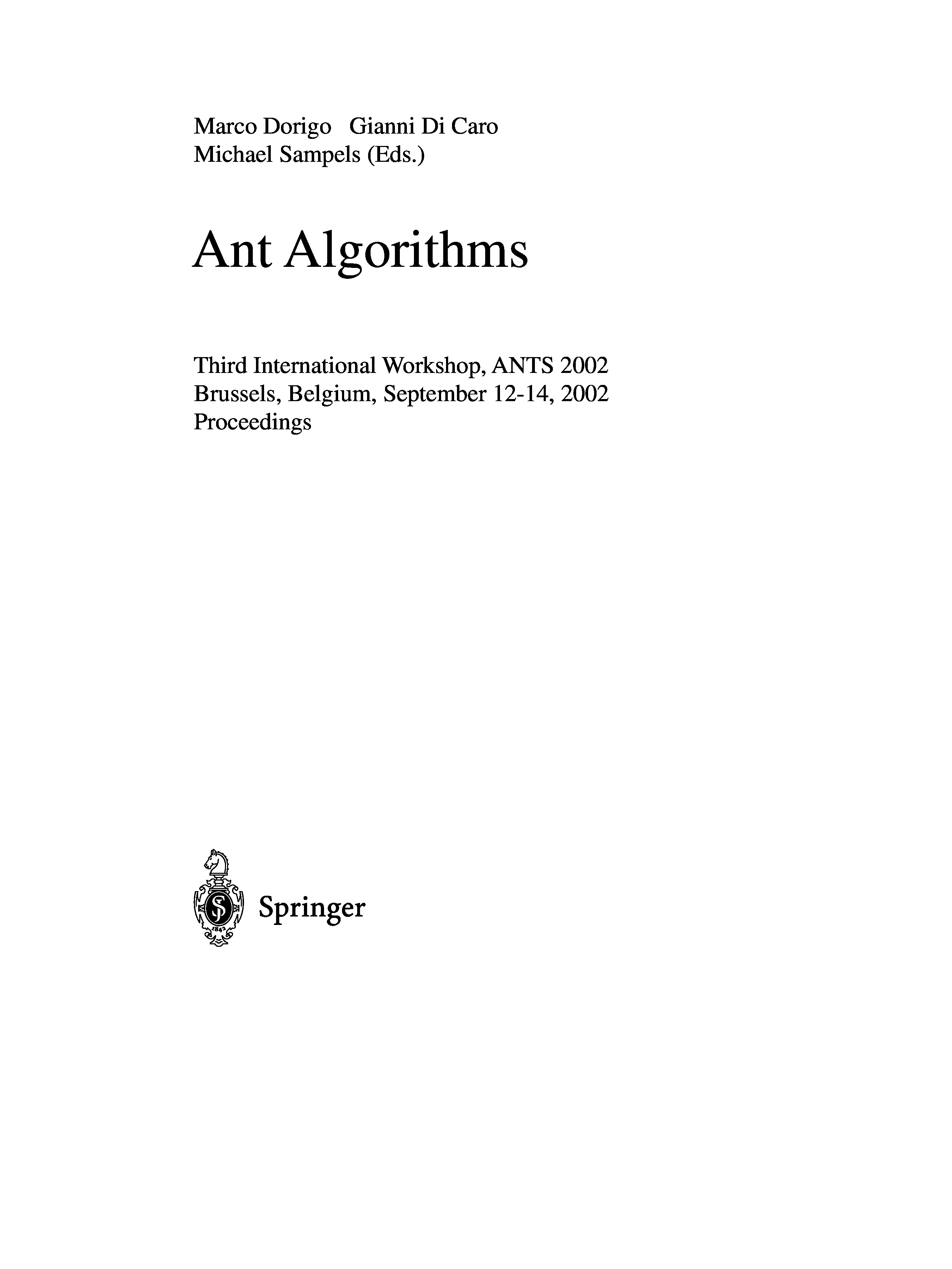 "Ant Algorithms, 3 conf., ANTS 2002" - читать интересную книгу автора (Marco Dorigo, Gianni Di Caro, Michael Sampels)