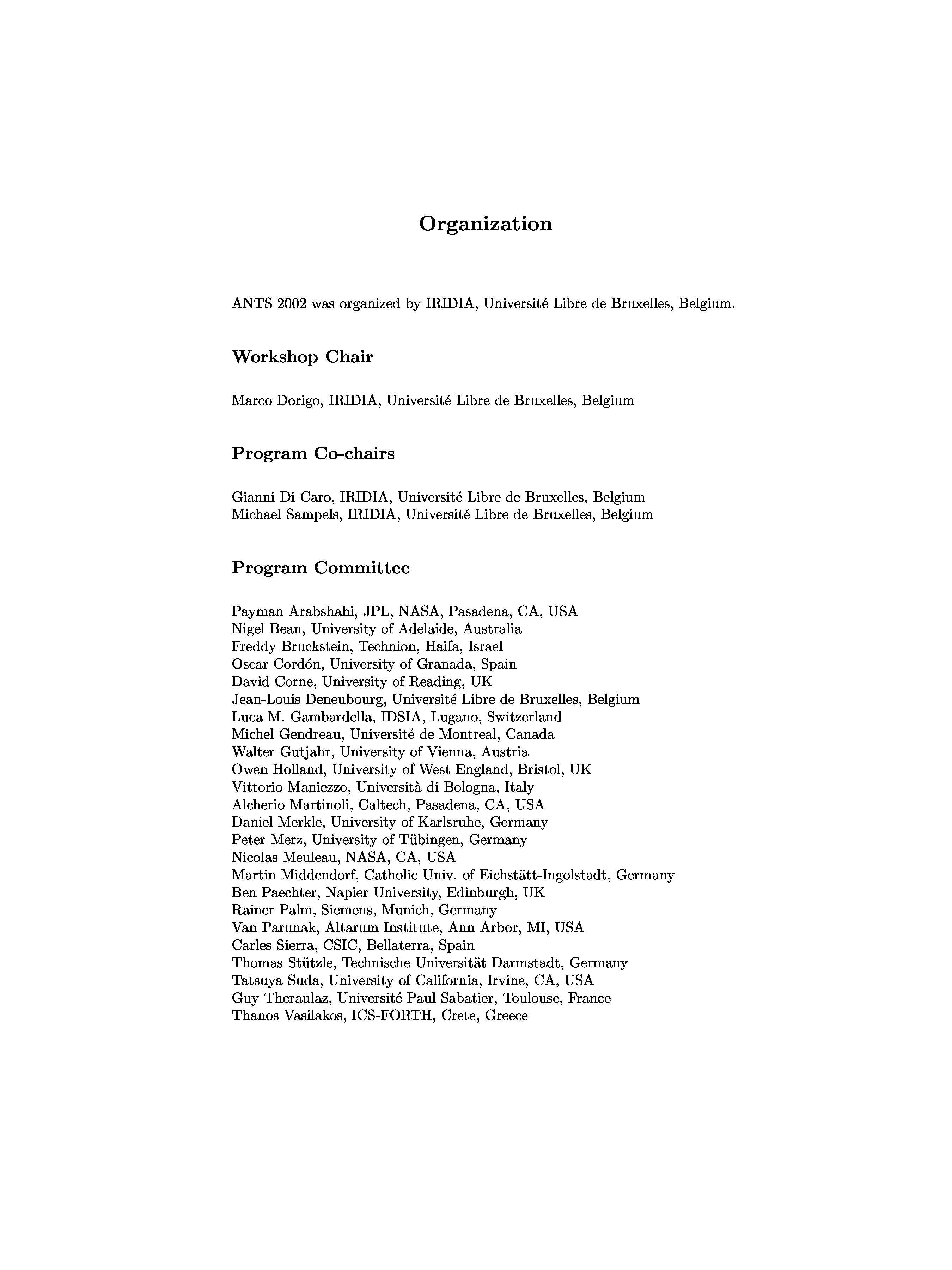 "Ant Algorithms, 3 conf., ANTS 2002" - читать интересную книгу автора (Marco Dorigo, Gianni Di Caro, Michael Sampels) |