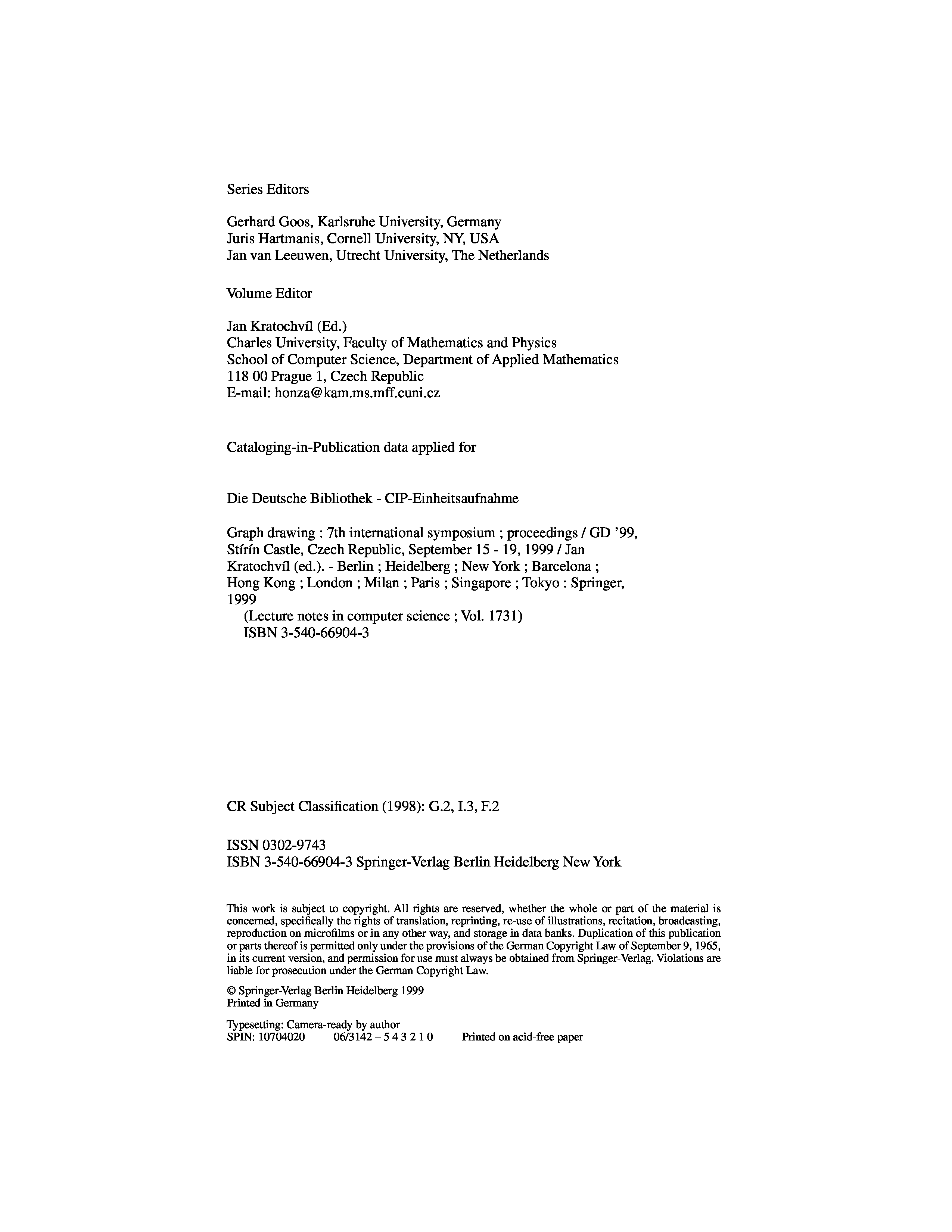 "Graph Drawing, 7 conf., GD'99" - читать интересную книгу автора