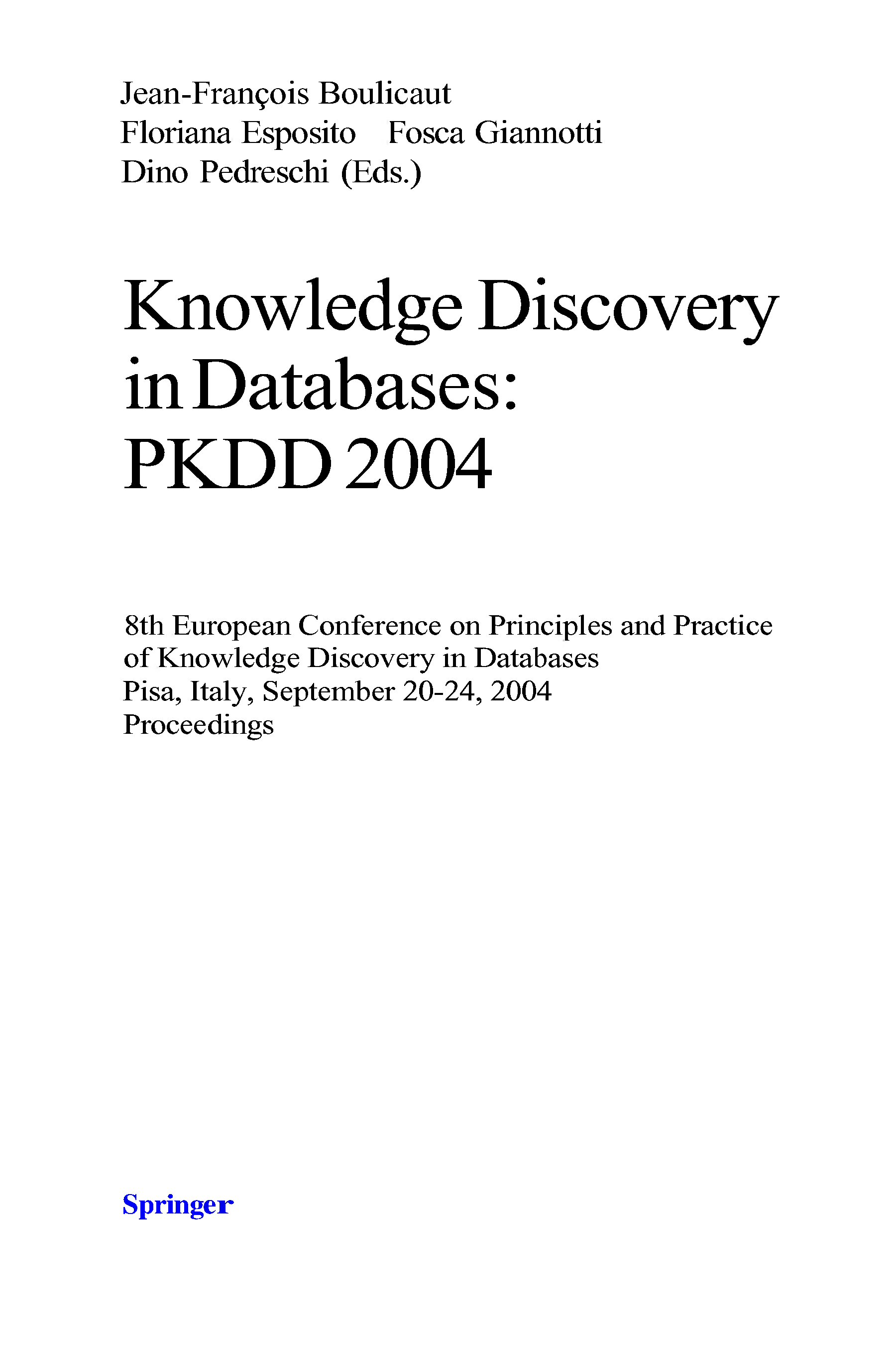 "Knowledge Discovery in Databases.. PKDD 2004, 8 conf" - читать интересную книгу автора (Jean-Francois Boulicaut, Floriana Esposito, Fosca Giannotti, Dino Pedreschi) |