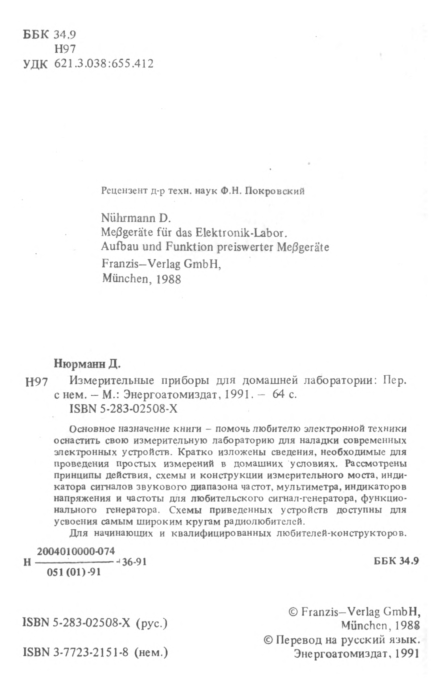 "Измерительные приборы для домашней лаборатории" - читать интересную книгу автора (Д.Нюрманн)