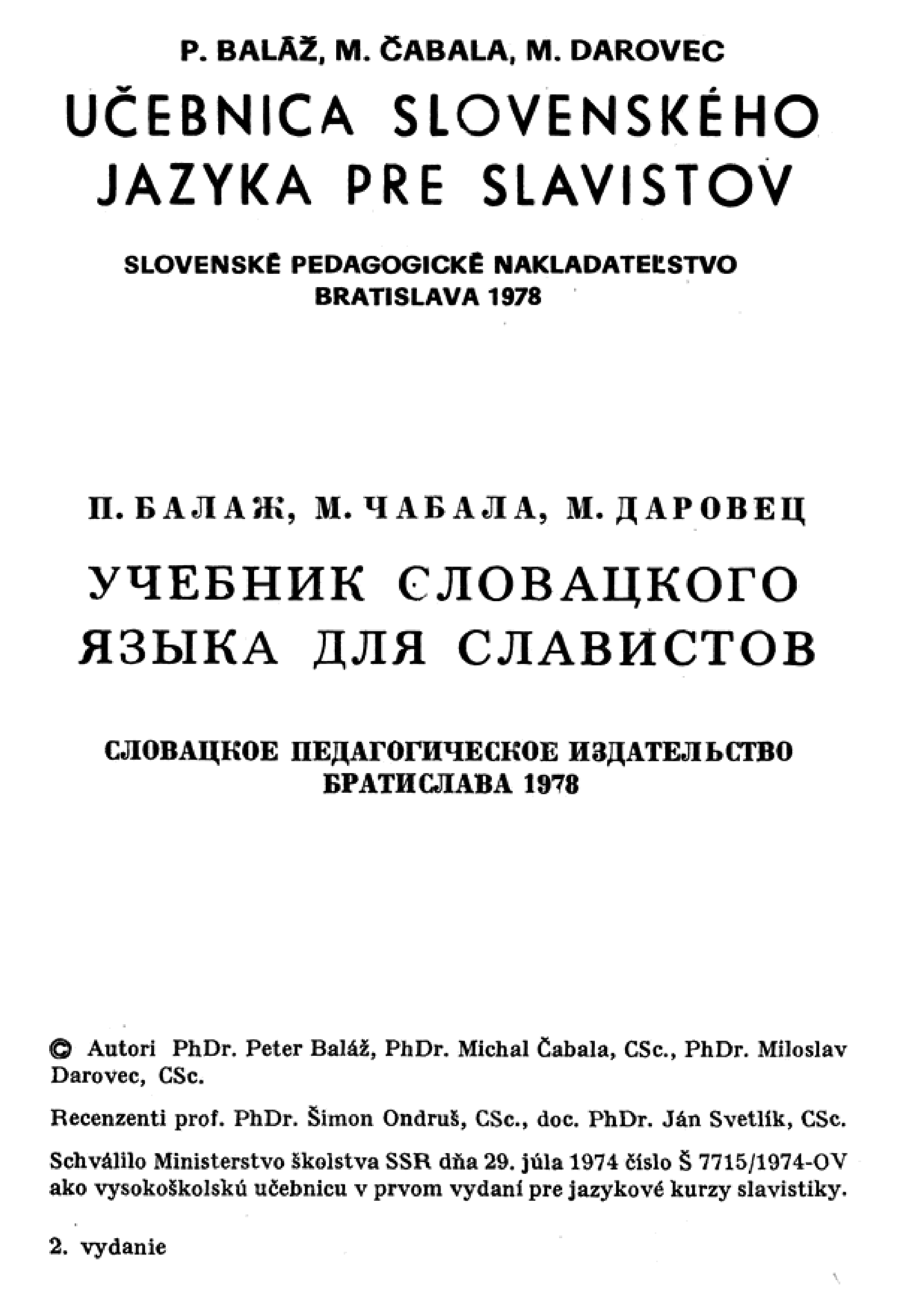 "Учебник Словацкого языка для славистов" - читать интересную книгу автора (П. Балаж, М. Чабала, М. Даровец) |
